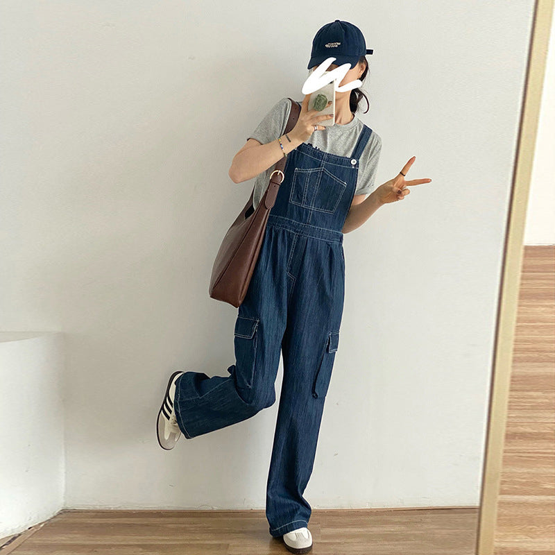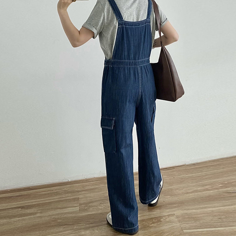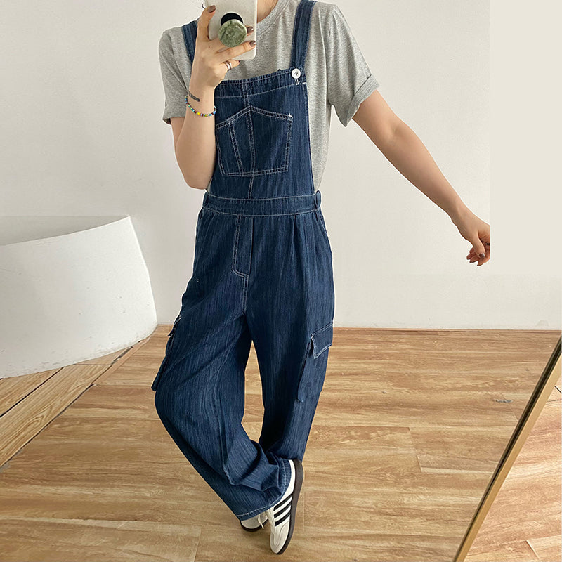 Quần baggy yếm denim chiết eo ống đứng - NU10373