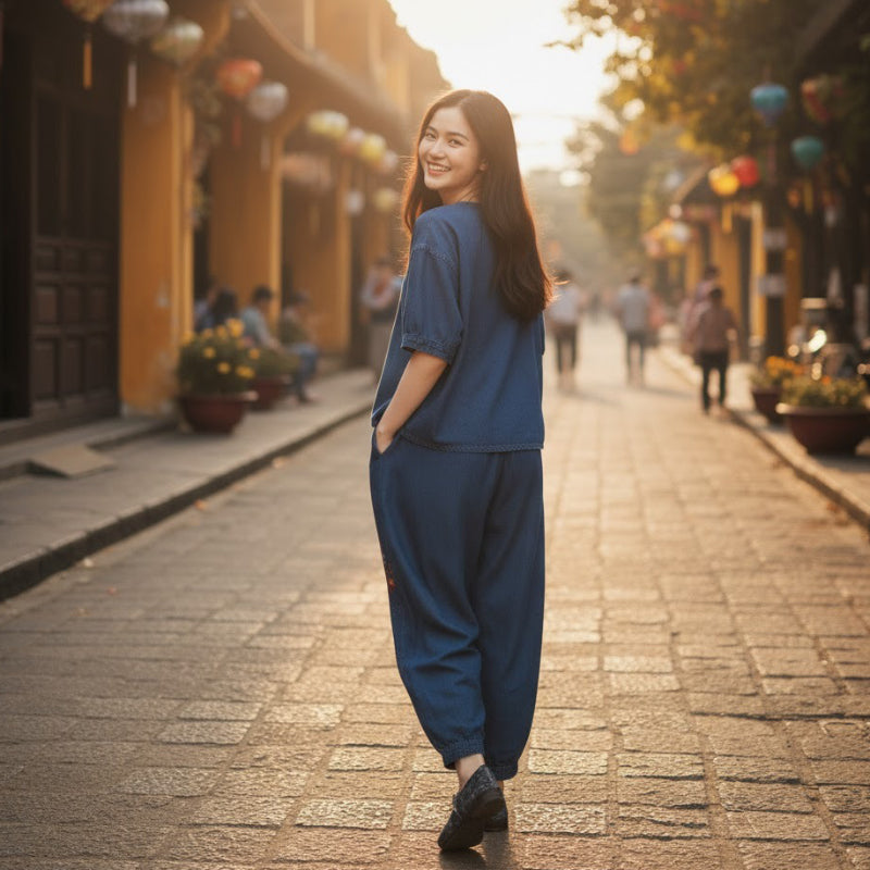 Quần: Eo 68-100cm, mông 132cm, dài 86cm