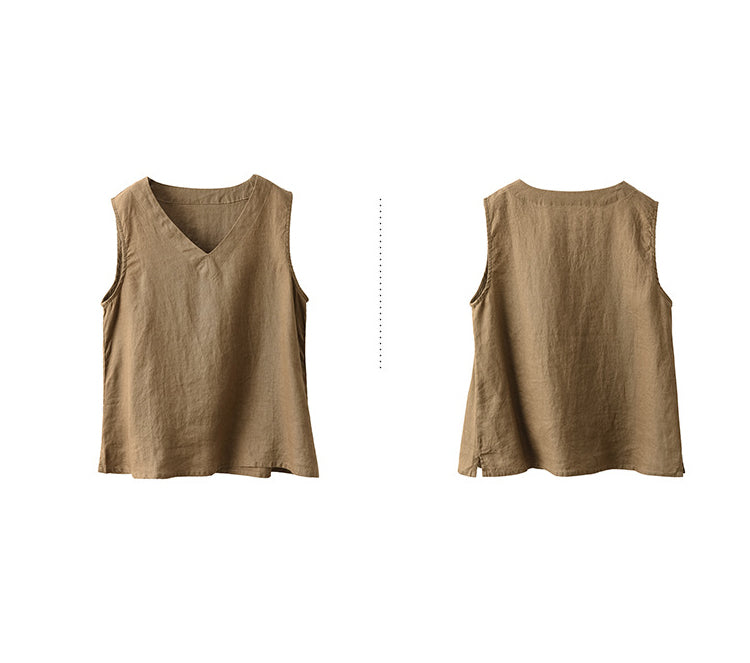 Áo t-shirt linen sát nách cổ V đơn sắc - A862