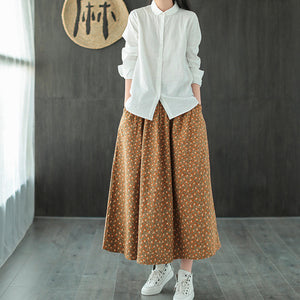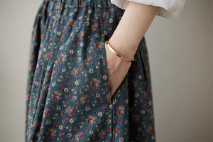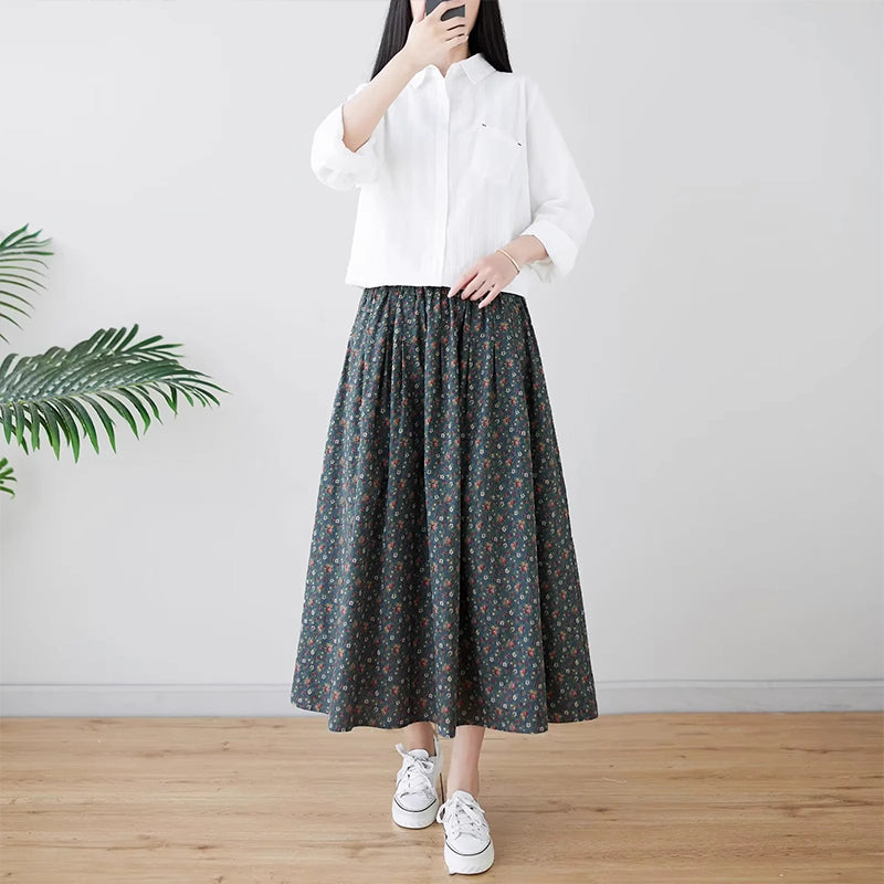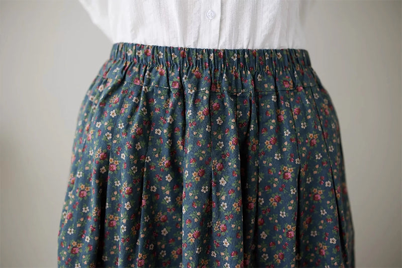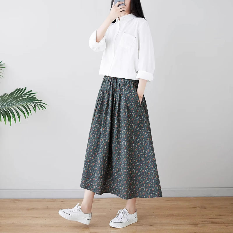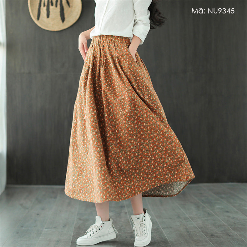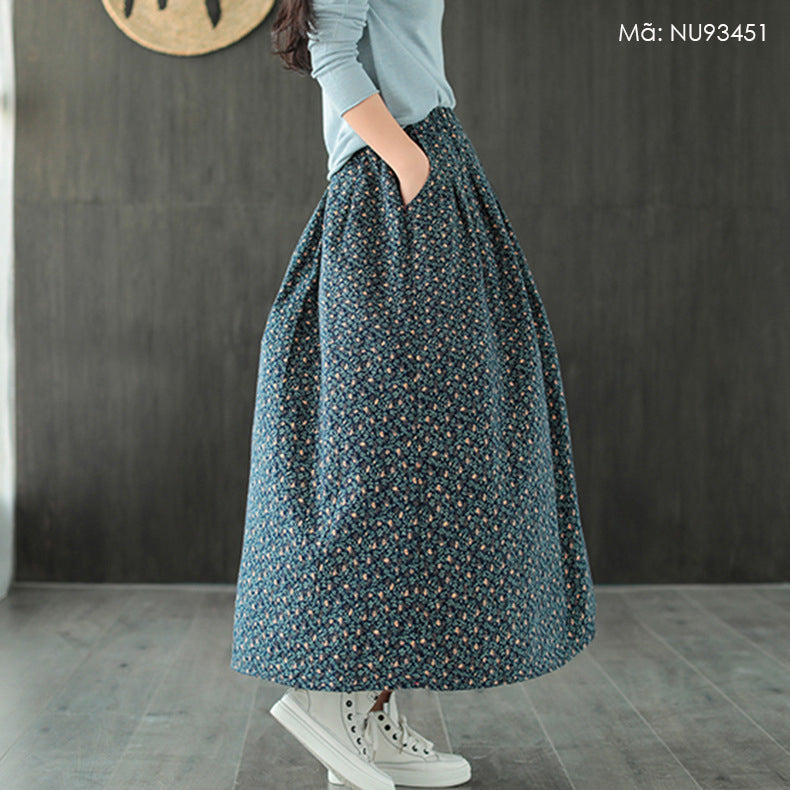 Chân váy chữ A retro lưng thun in hoa liti - NU9345