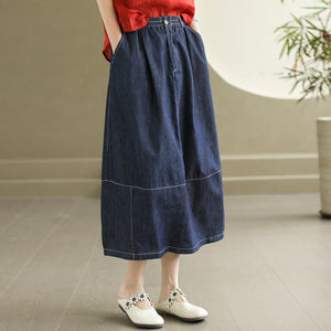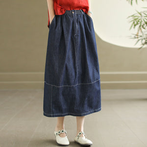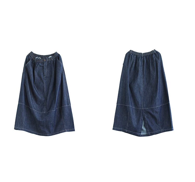Chân váy denim lưng thun kiểu xẻ tà sau - V104