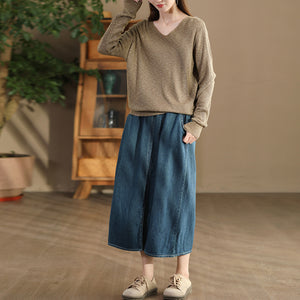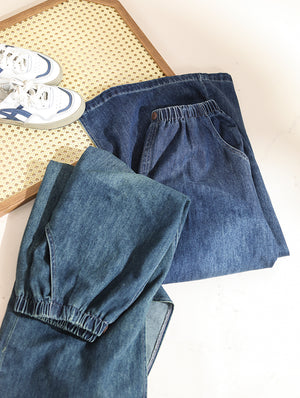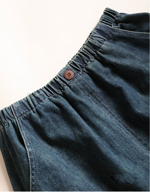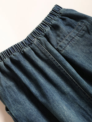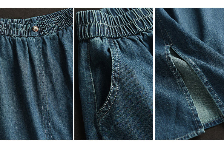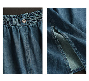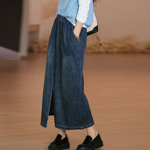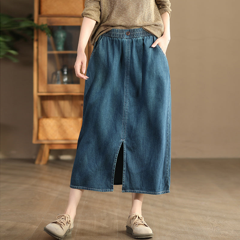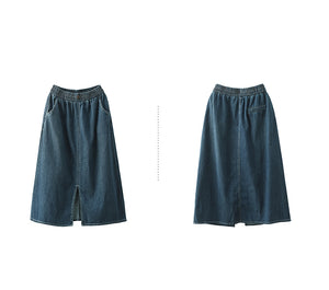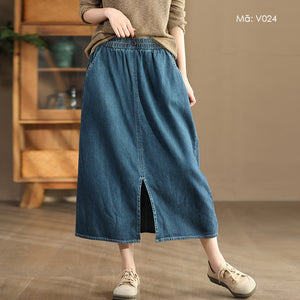 Chân váy denim lưng thun một túi sau xẻ tà - V024
