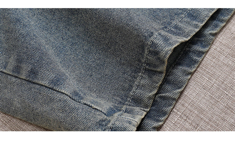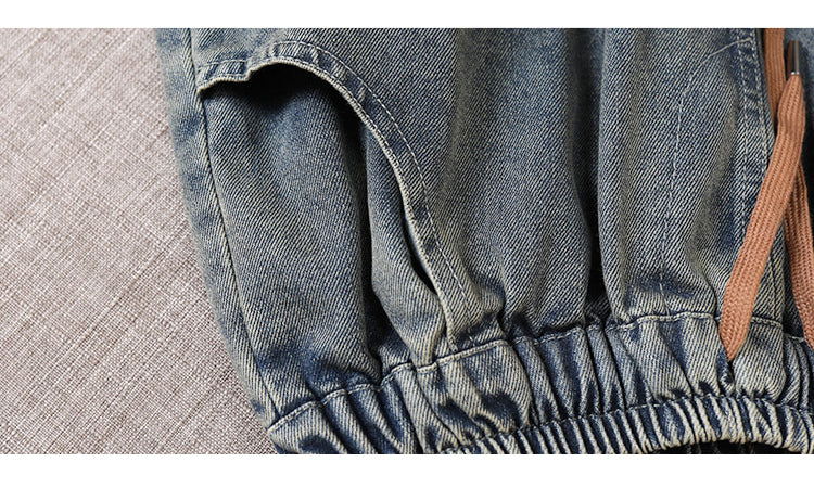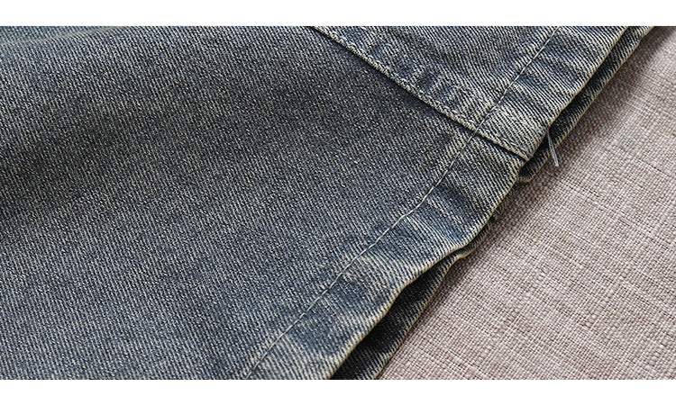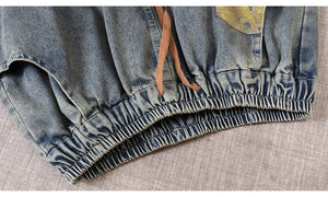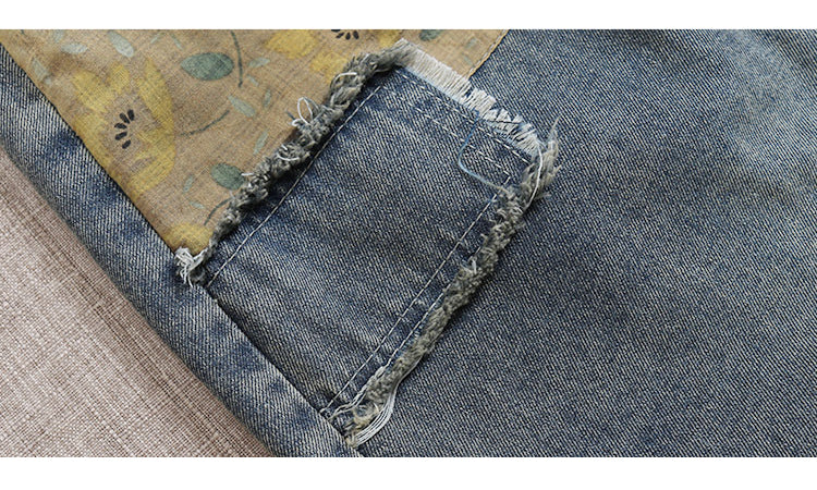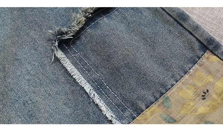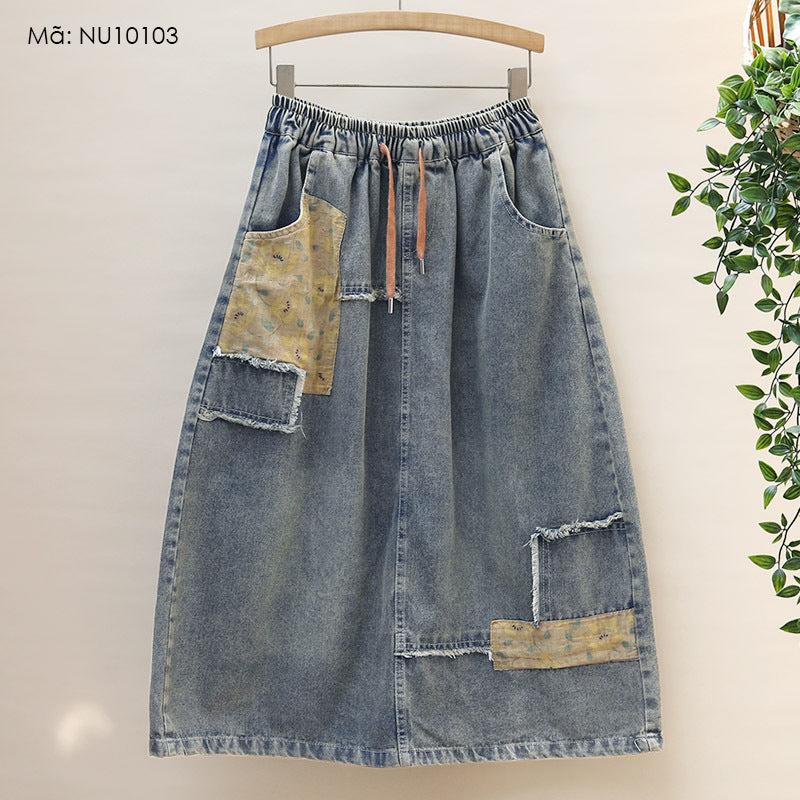 Chân váy denim lưng thun túi phối vải hoa - NU10103