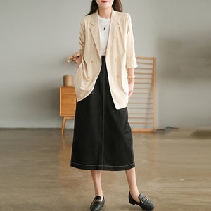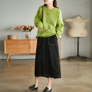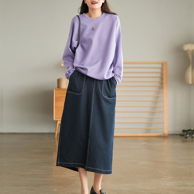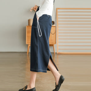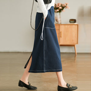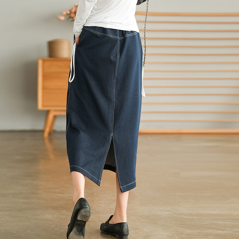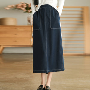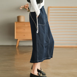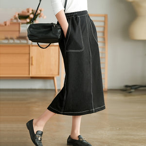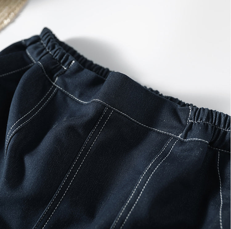 Chân váy denim lưng thun túi vuông chạy chỉ nổi - NU9661