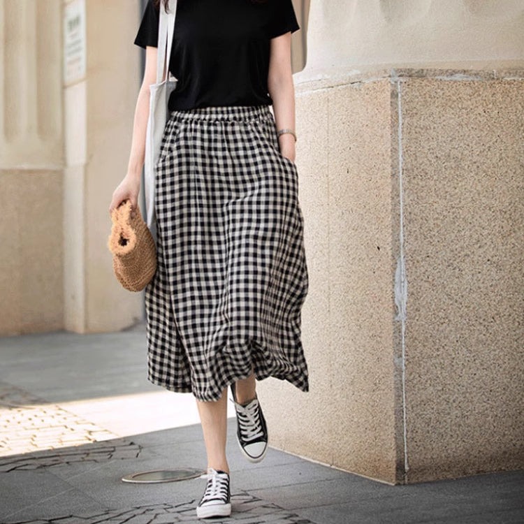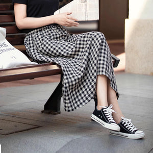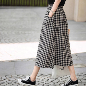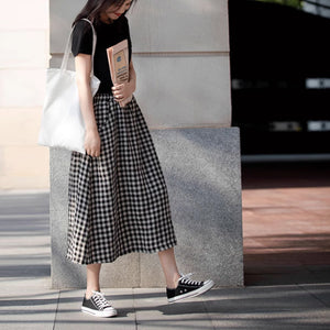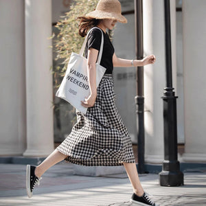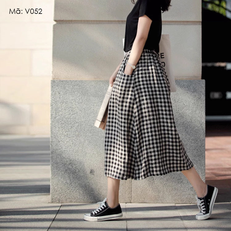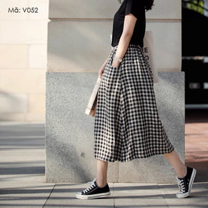 Chân váy kẻ sọc caro lưng túi chéo - V052