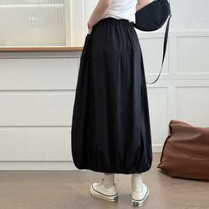 Chân váy linen lưng thun dây rút kiểu alibaba - V083