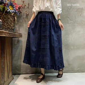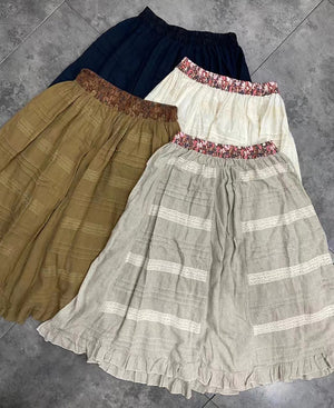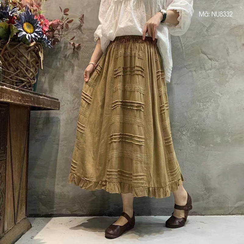 Chân váy linen lưng thun đính ren song song - NU8332