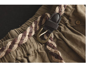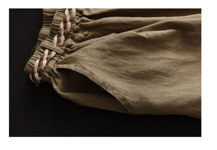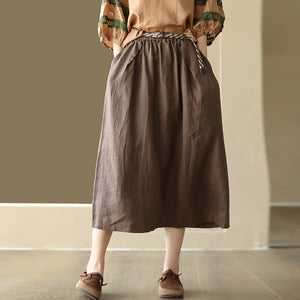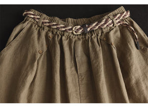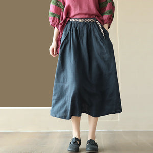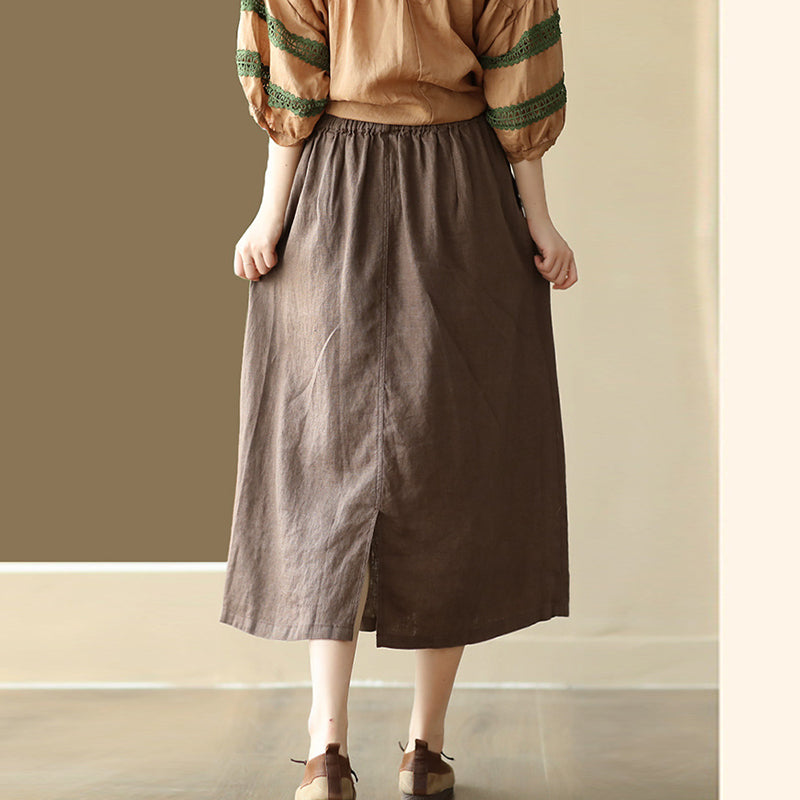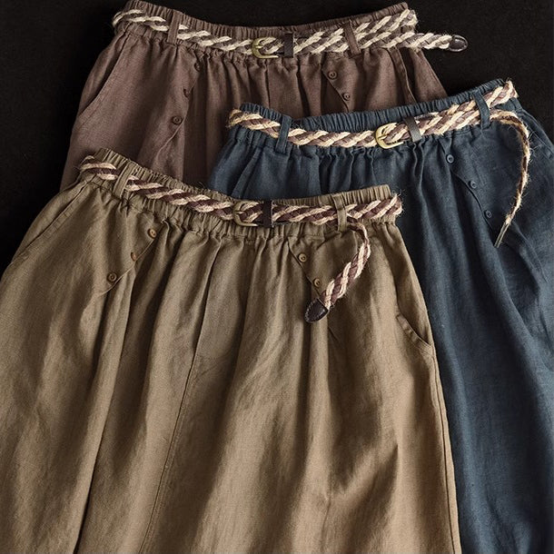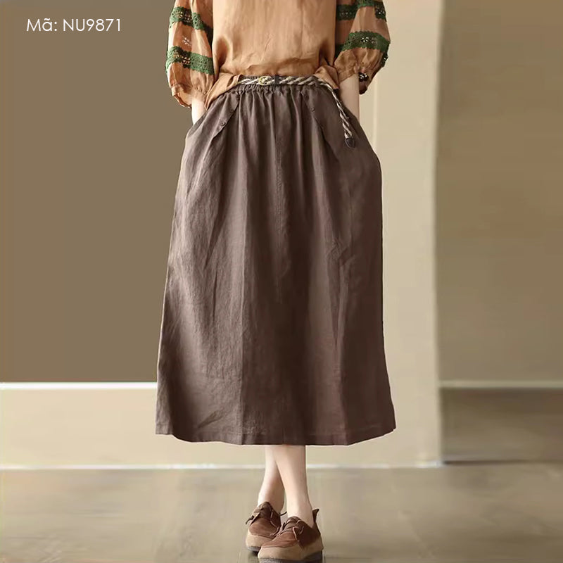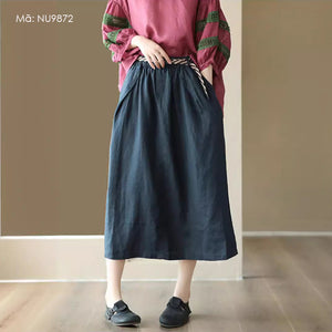 Chân váy linen lưng thun hai túi chéo đính khuy kiểu - NU9871
