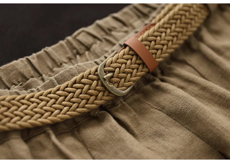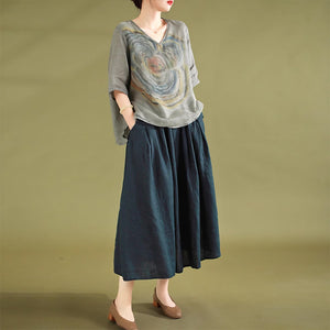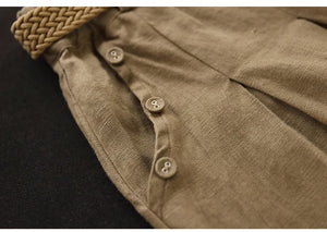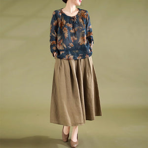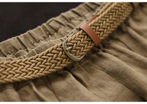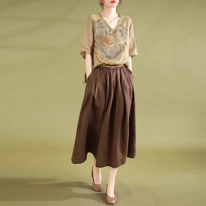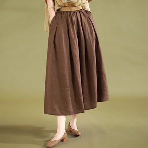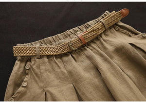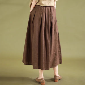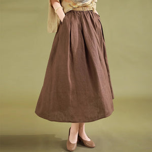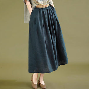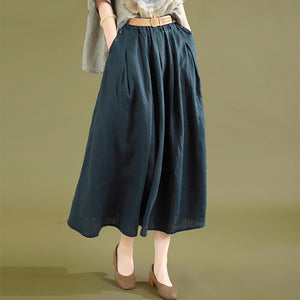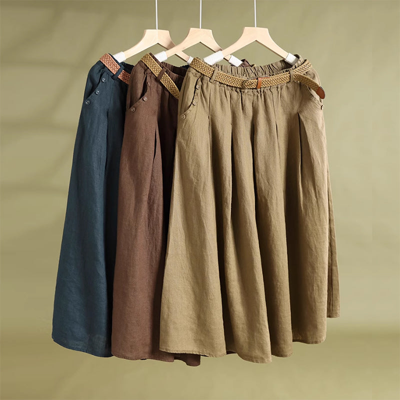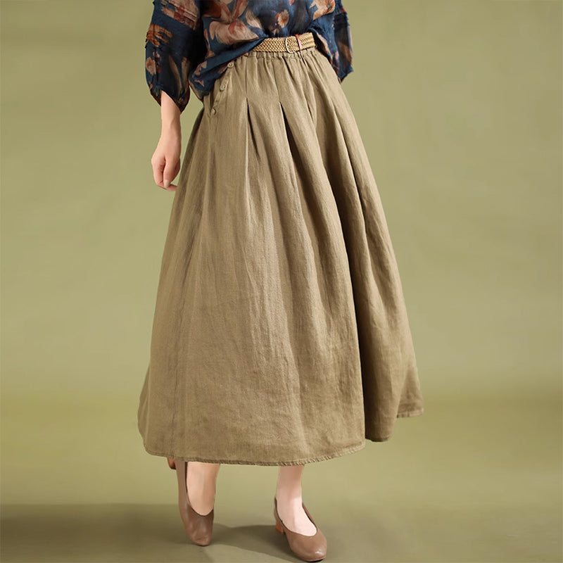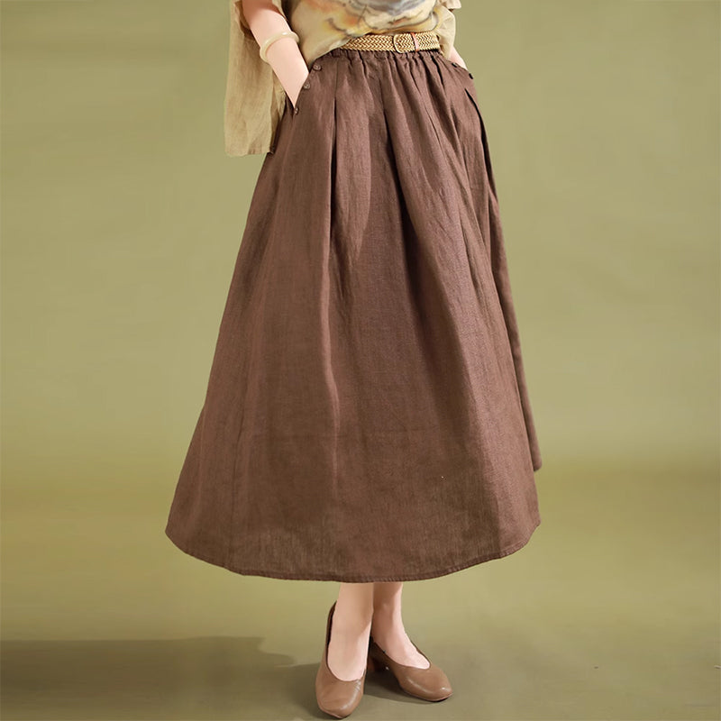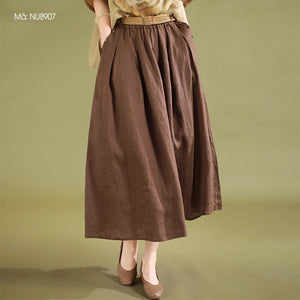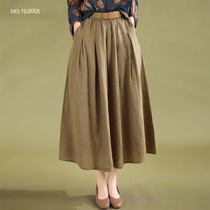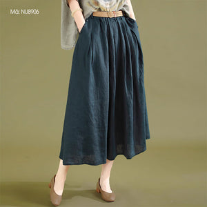 Chân váy linen lưng thun hai túi chéo đính khuy - NU8905