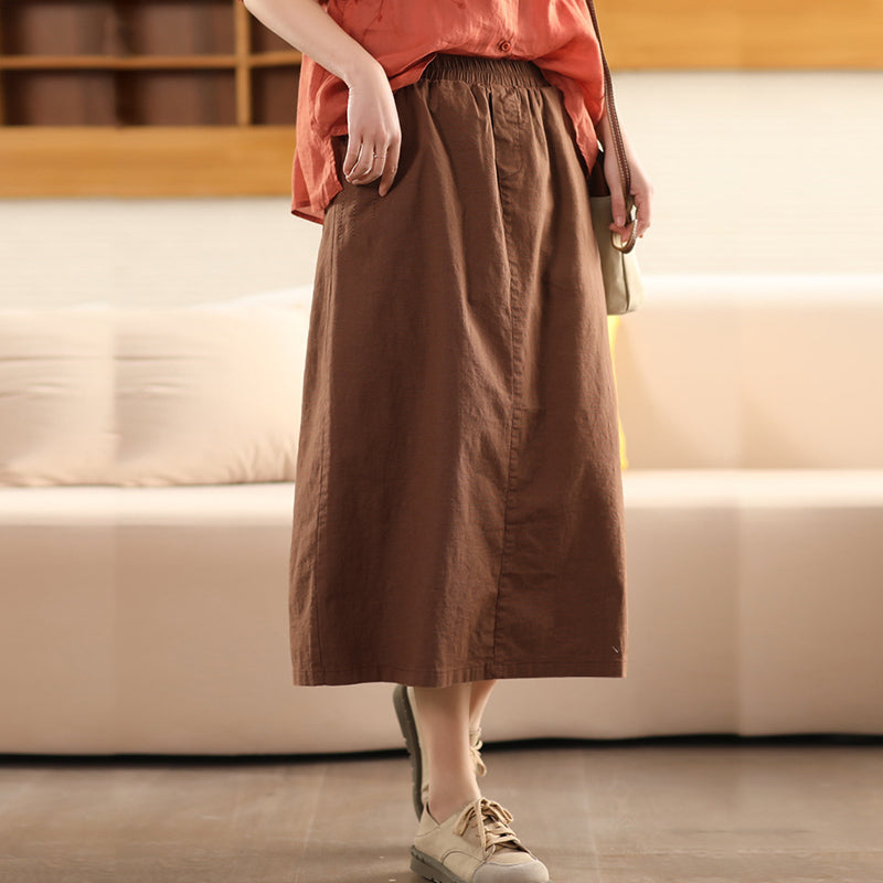 Chân váy linen lưng thun hai túi xẻ vạt sau - V077