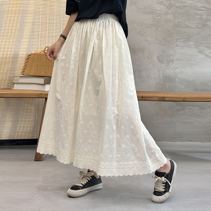 Chân váy linen lưng thun thêu hoa mặt trời - NU10186