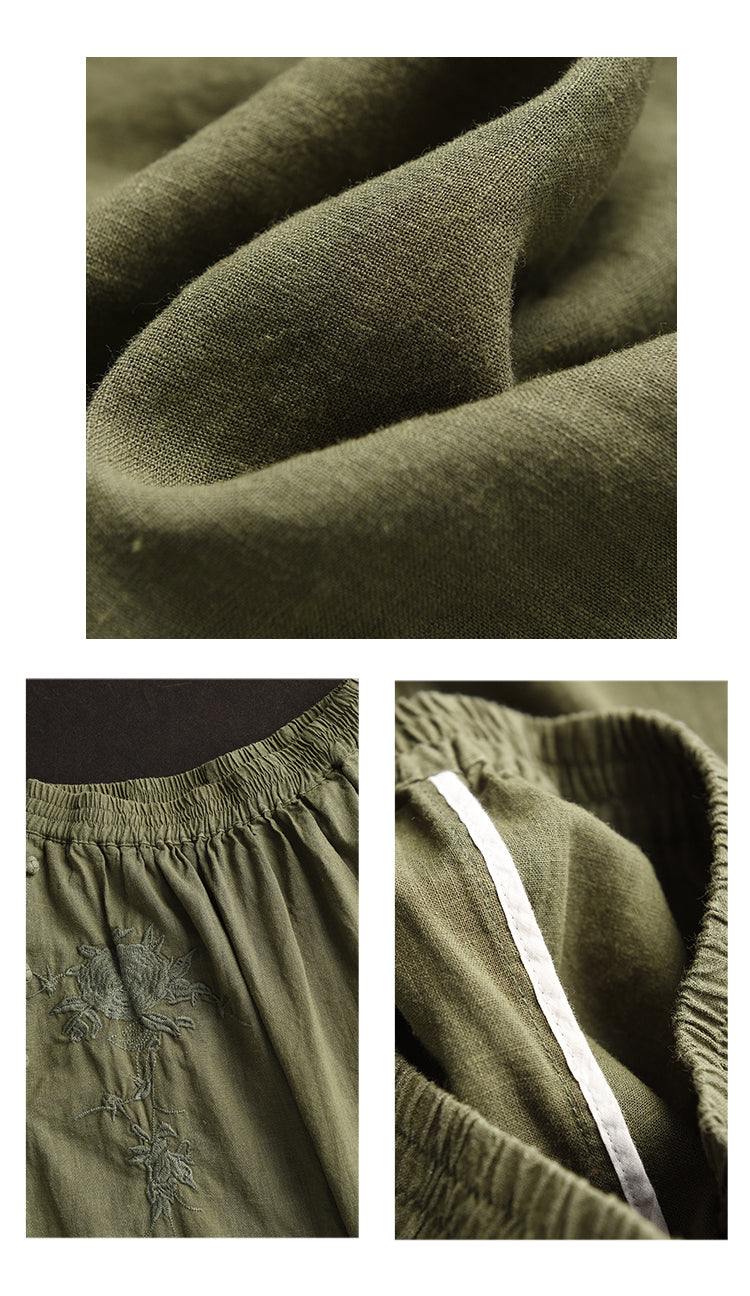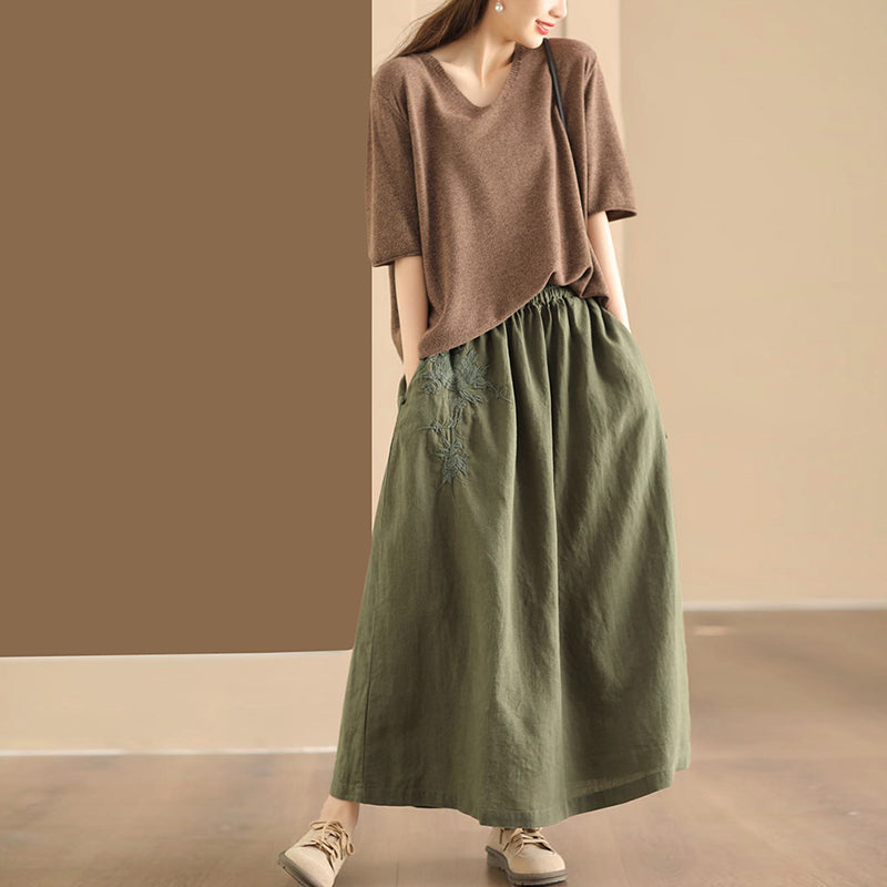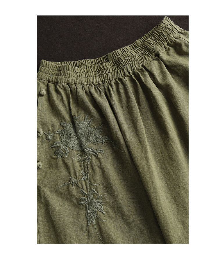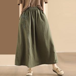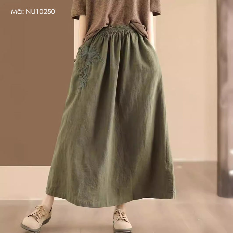 Chân váy linen lưng thun túi chéo thêu hoa văn khuy tròn - NU10250