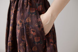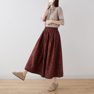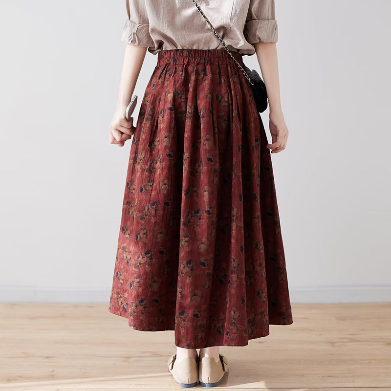 Chân váy linen retro lưng thun chữ A in hoa liti - NU9982