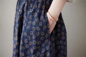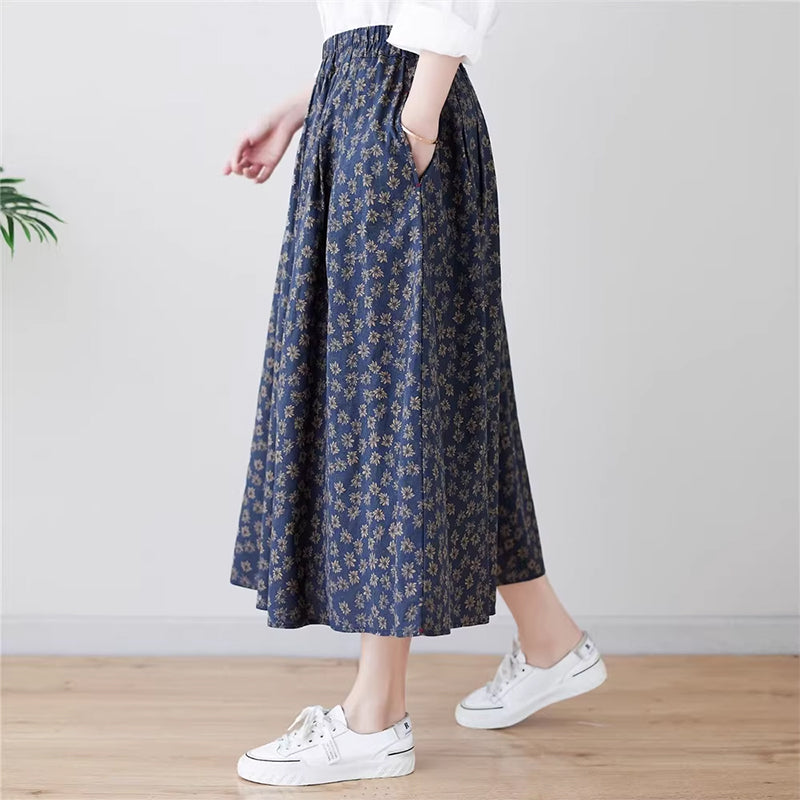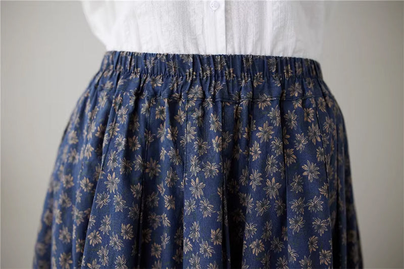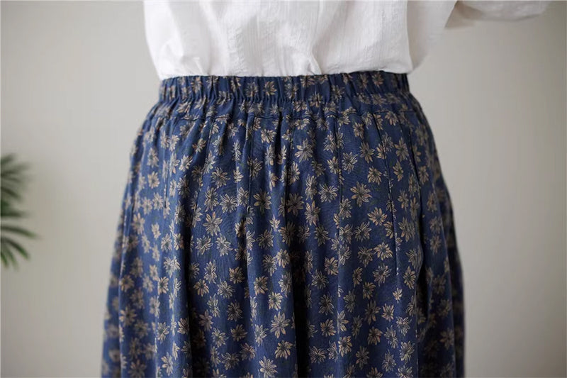 Chân váy linen retro lưng thun túi chéo in hoa cúc liti - NU9156