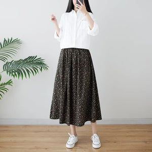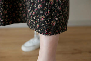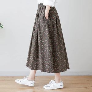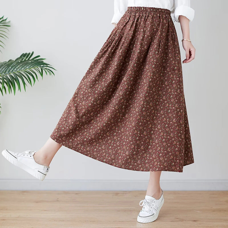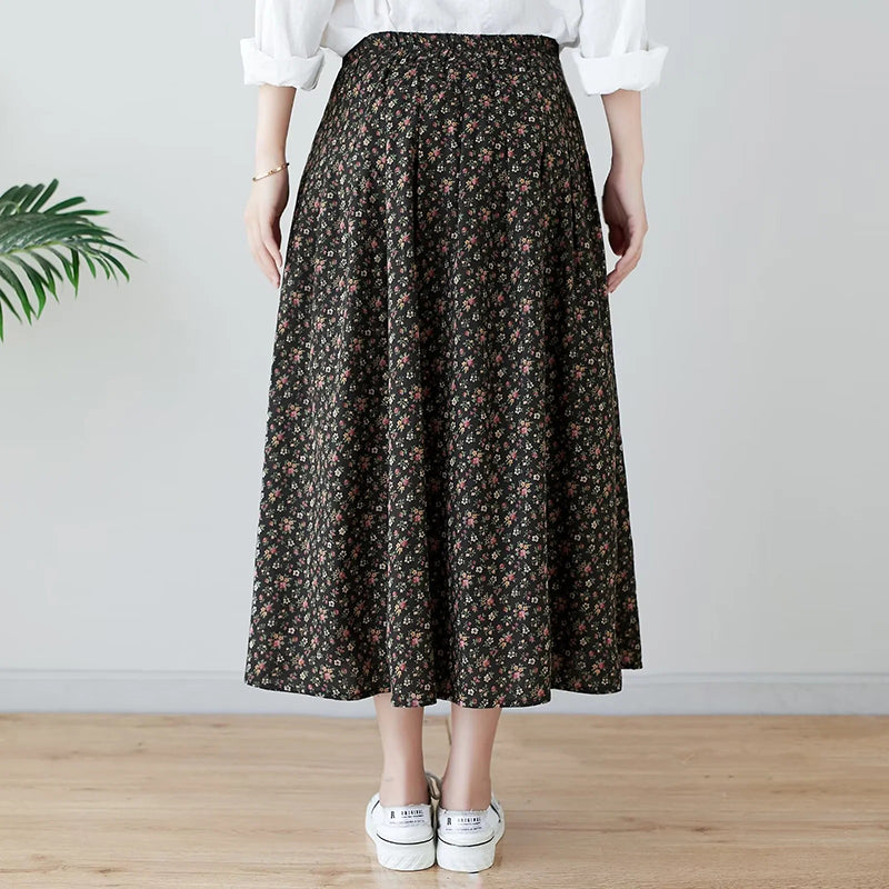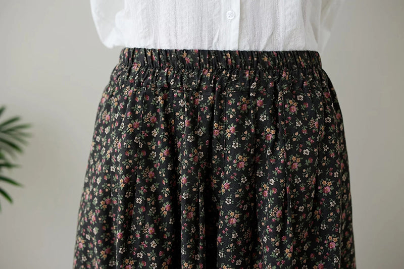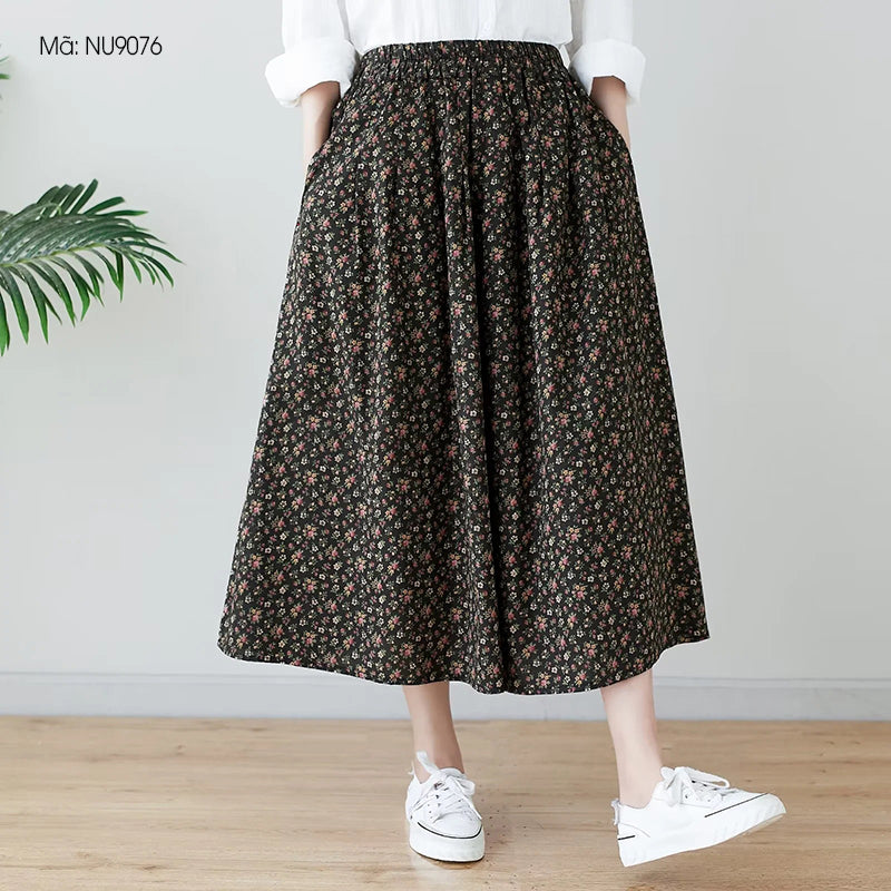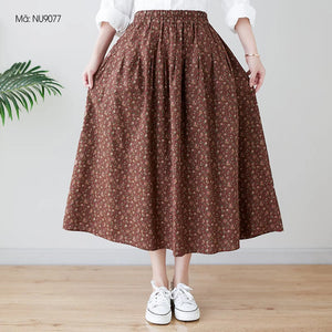 Chân váy linen retro lưng thun túi chéo in hoa liti - V012