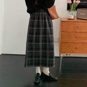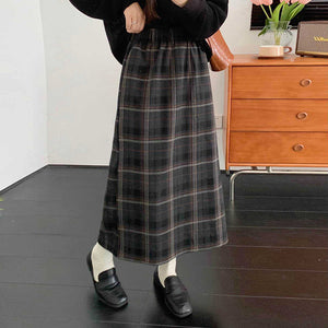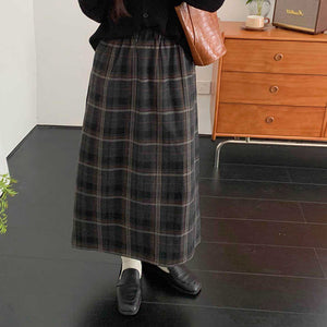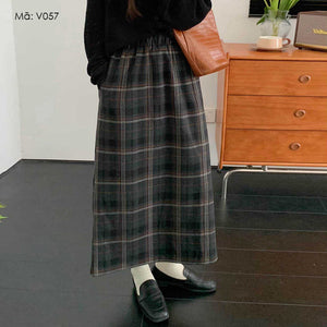 Chân váy lưng thun hai túi chéo kẻ sọc caro - V0557