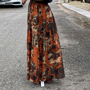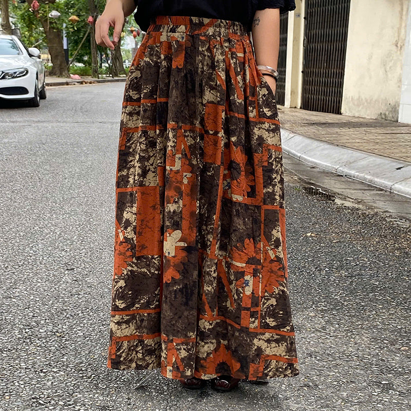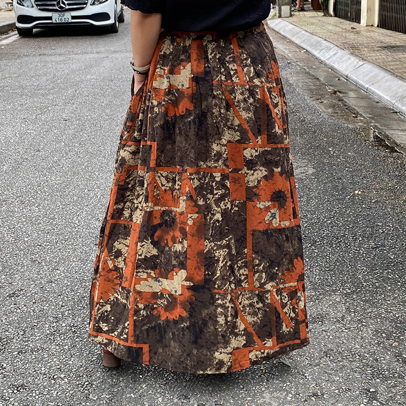 Chân váy lưng thun in hoa văn trừu tượng - V056