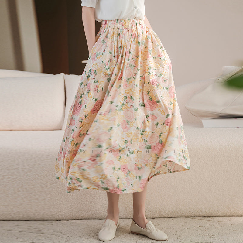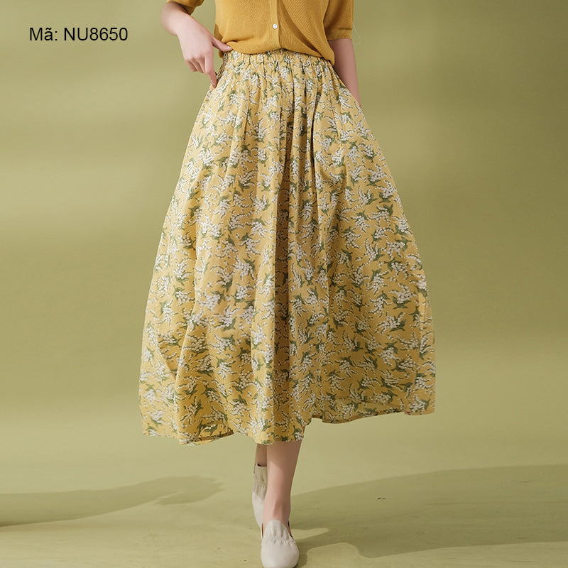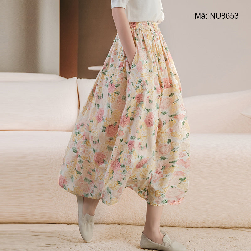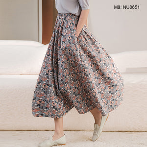 Chân váy lưng thun xếp ly in hoa liti - NU8647