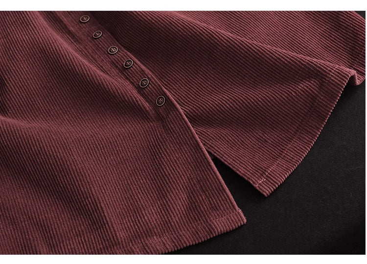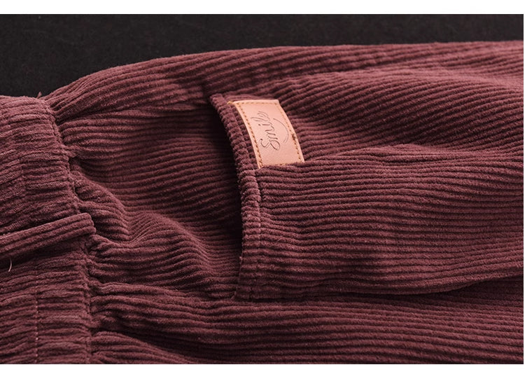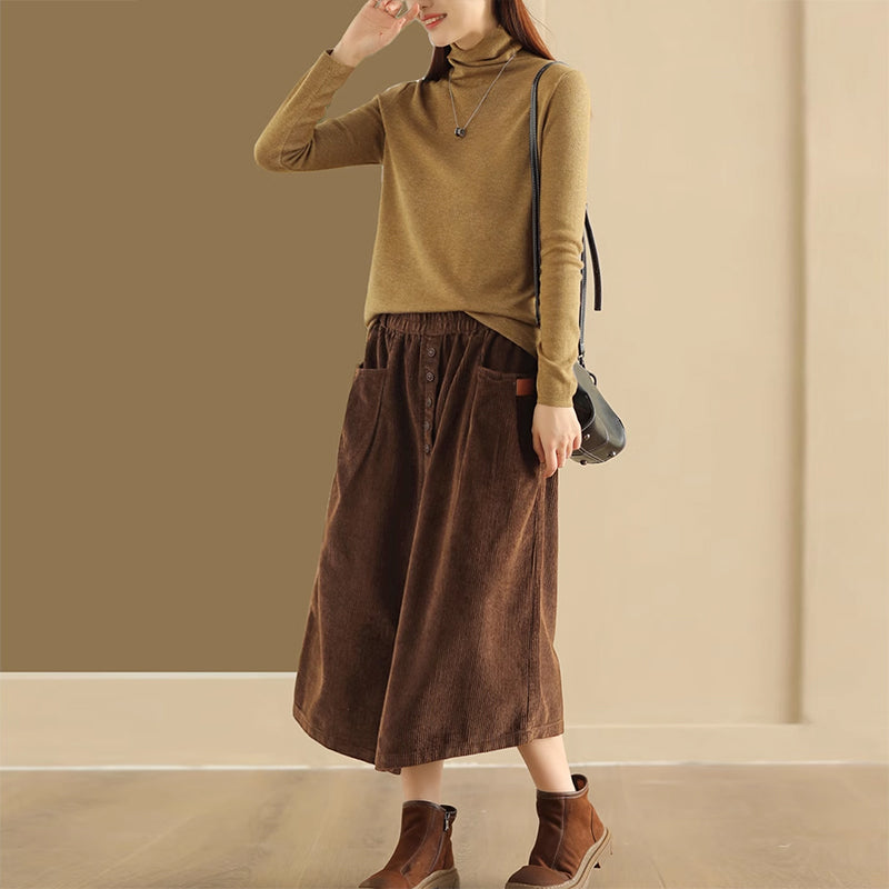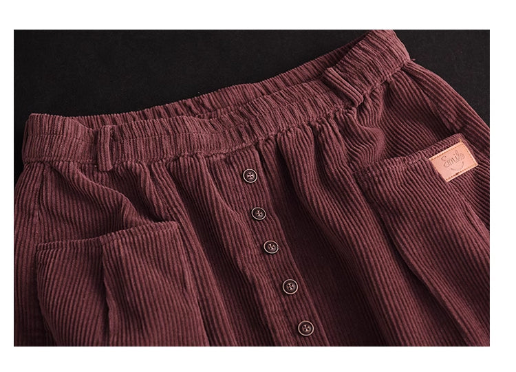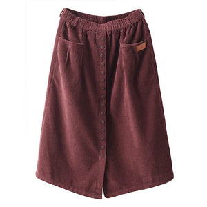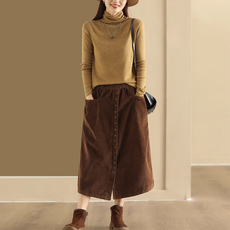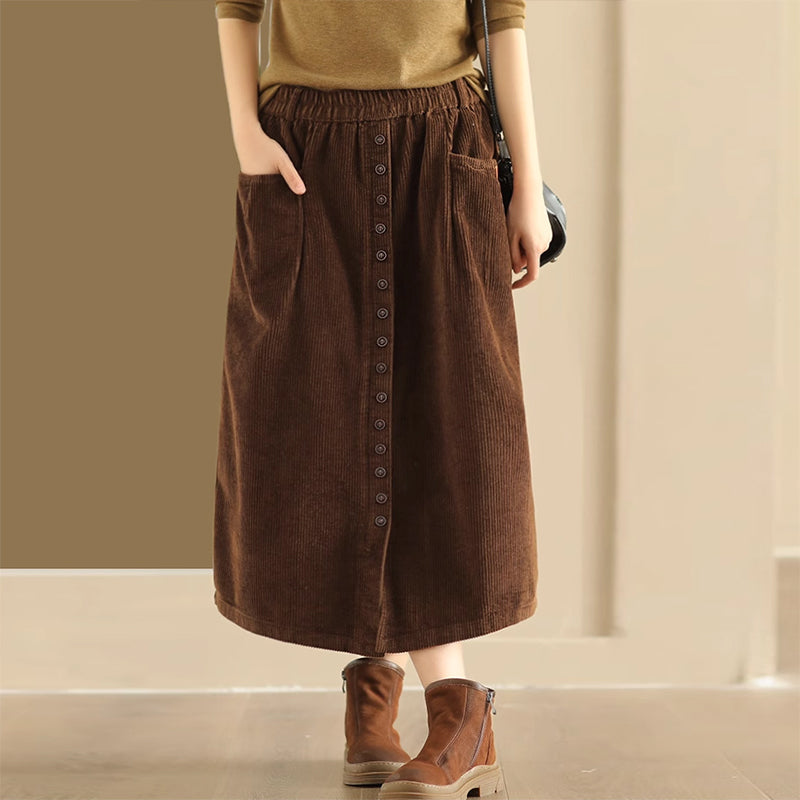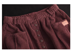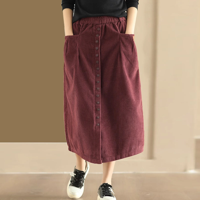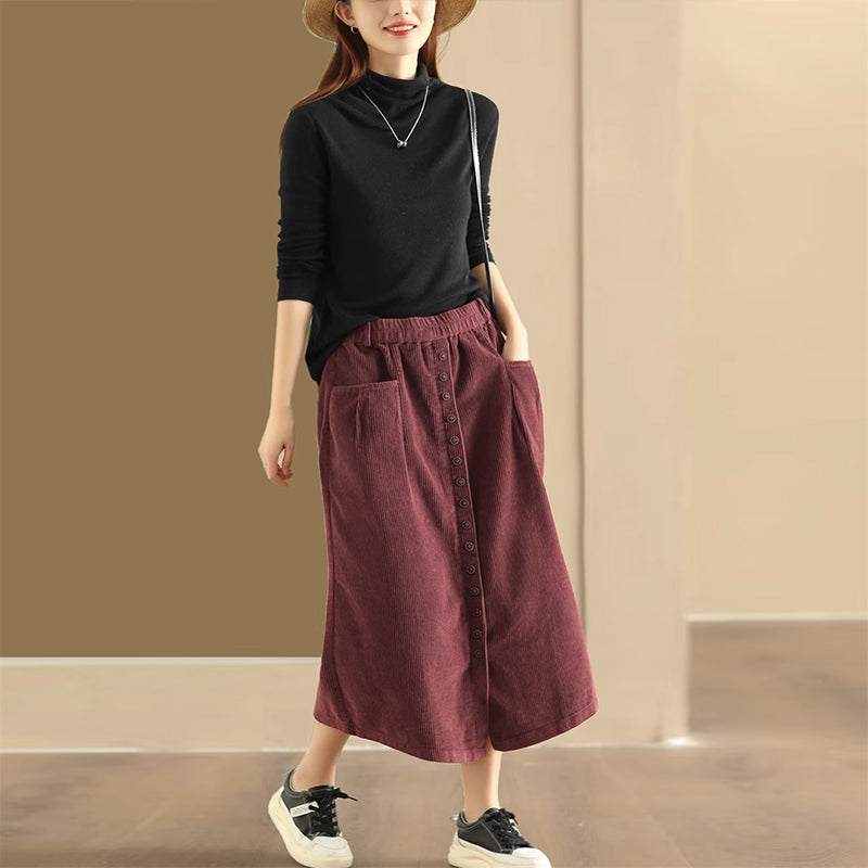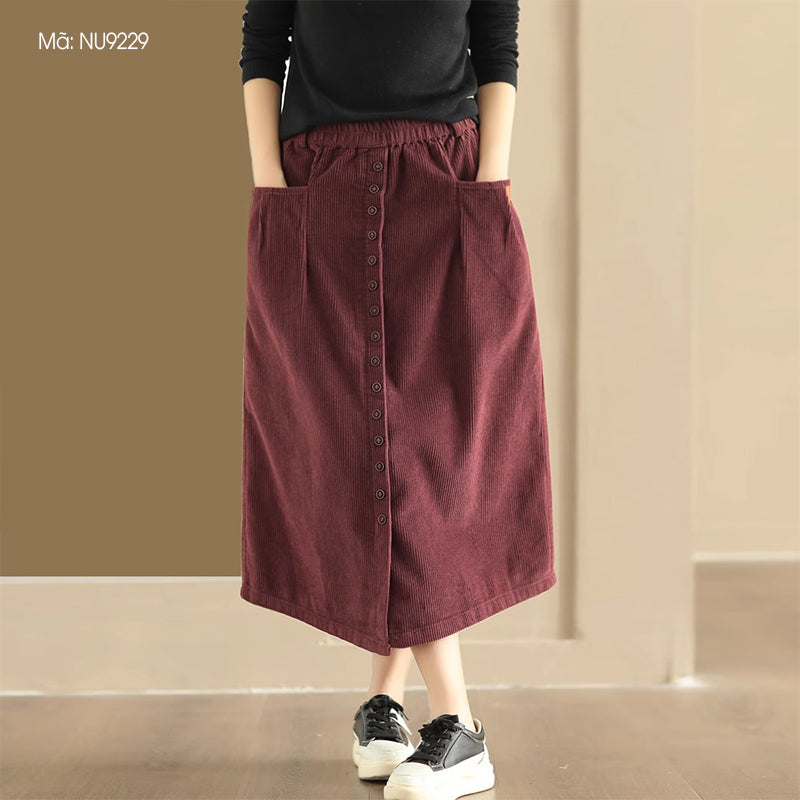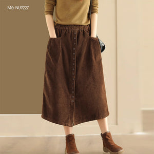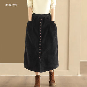Chân váy nhung retro lưng thun khuy kiểu hai túi ngang - NU9227