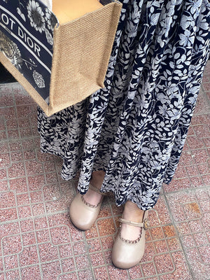 Chân váy retro in hoa lá đơn sắc - NU8638