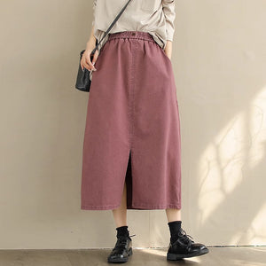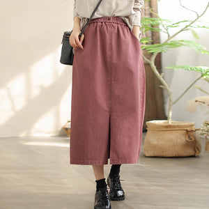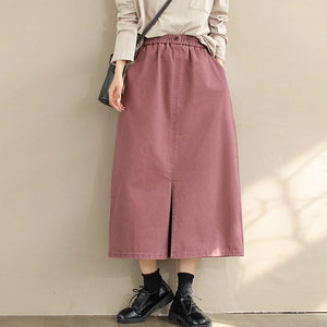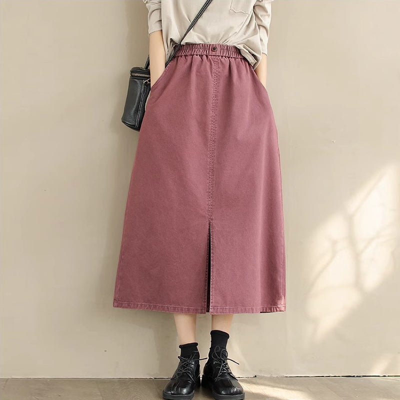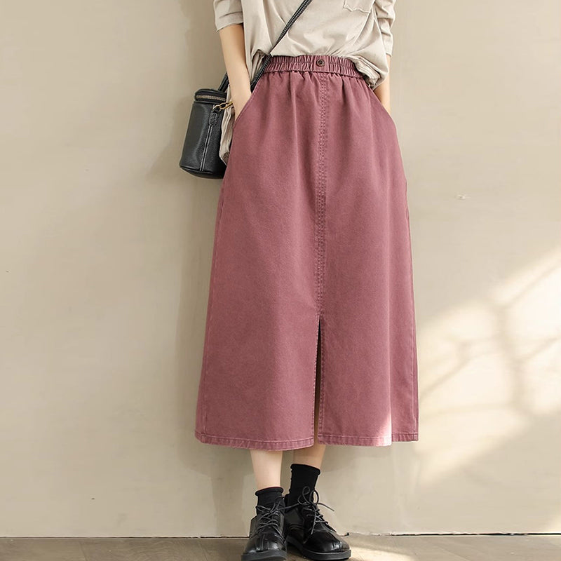 Chân váy retro lưng thun đính khuy hai túi chéo - NU9828