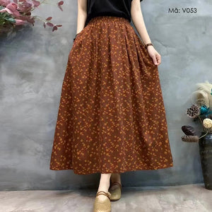 Chân váy retro lưng thun hai túi chéo in hoa liti - V053