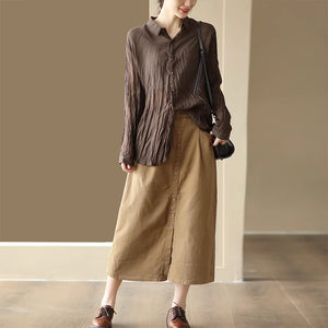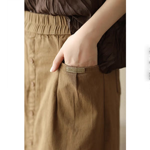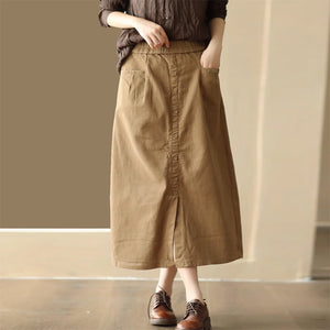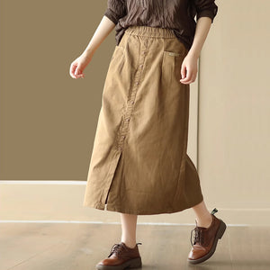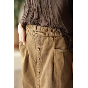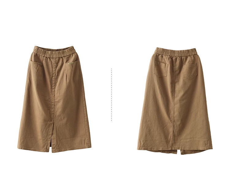 Chân váy retro lưng thun khuy kiểu một túi sau - NU9248