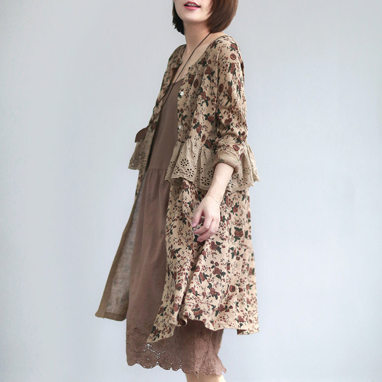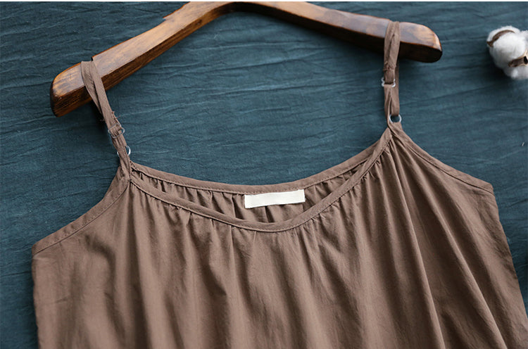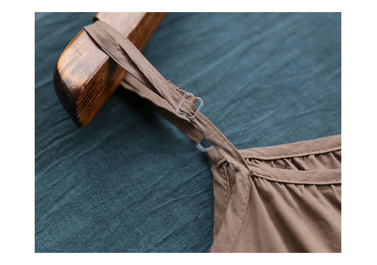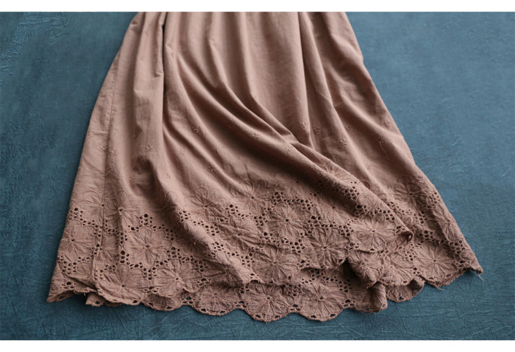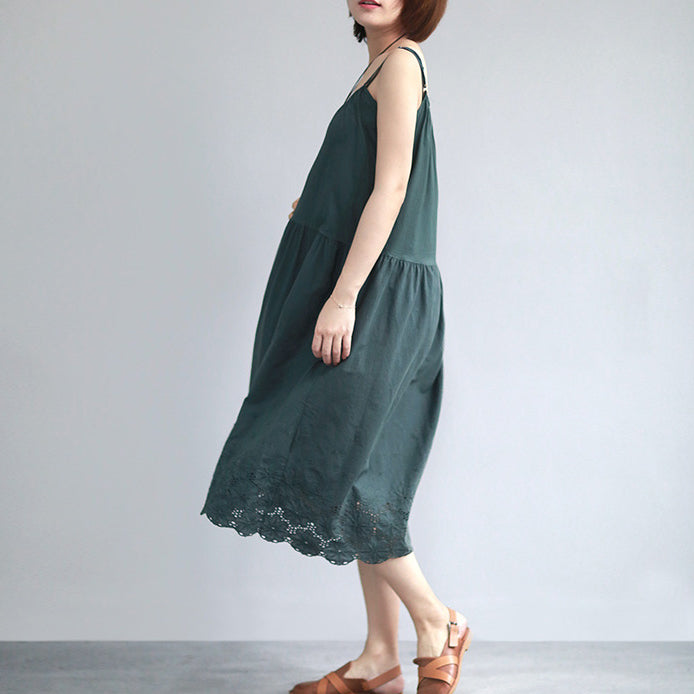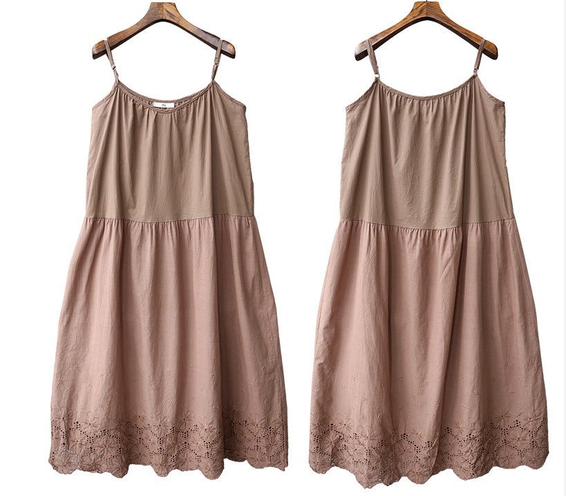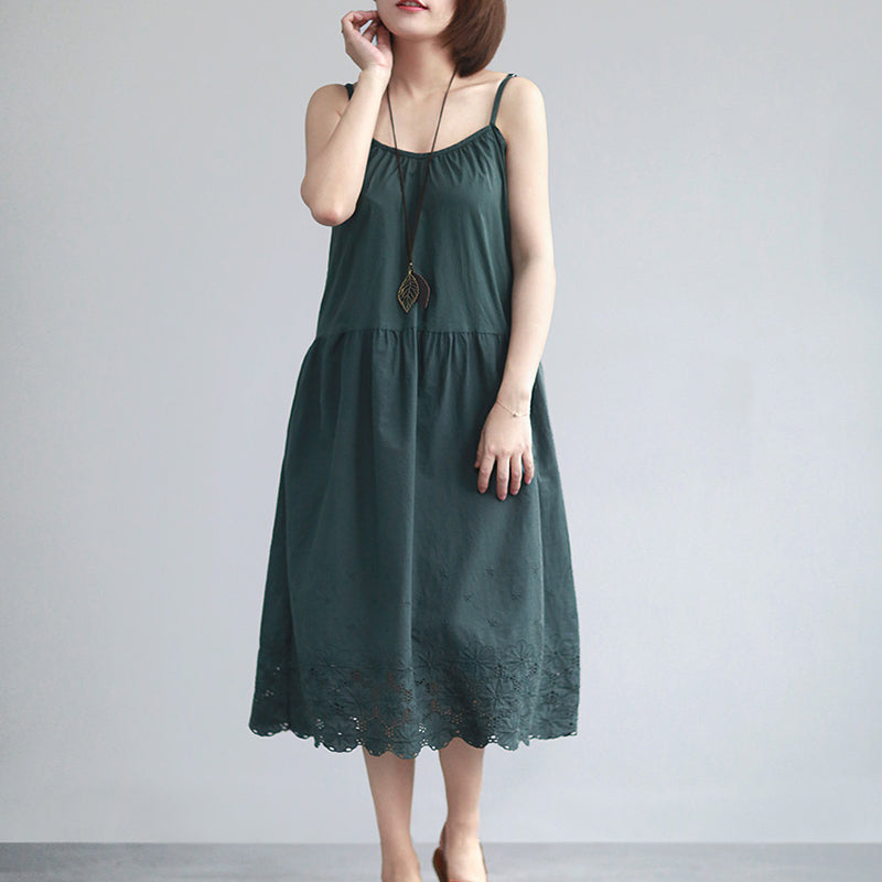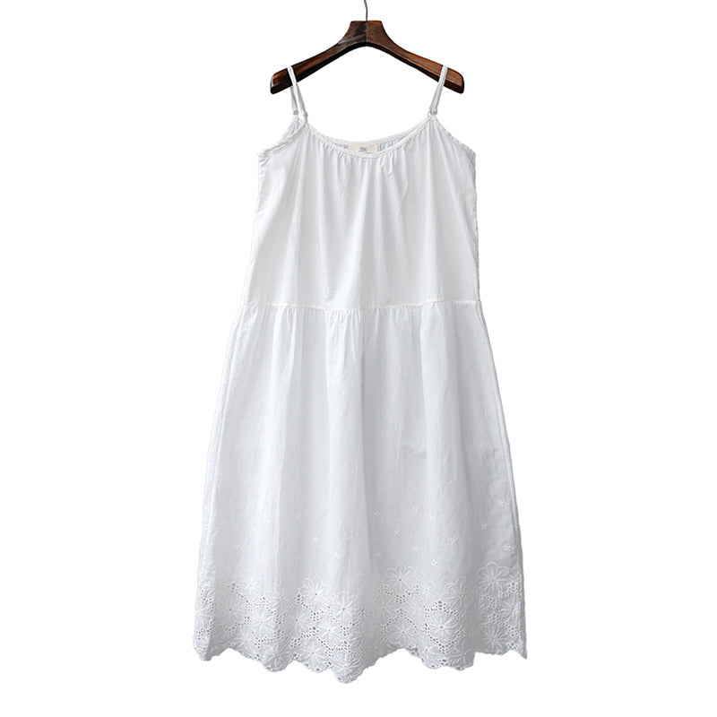 Đầm liền linen hai dây form xòe thêu hoa lá - NU6941
