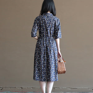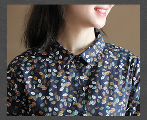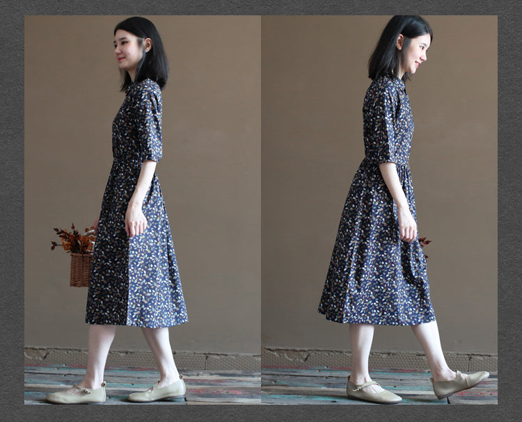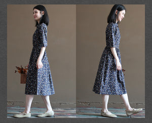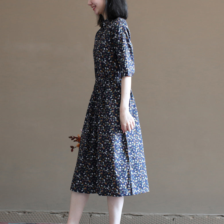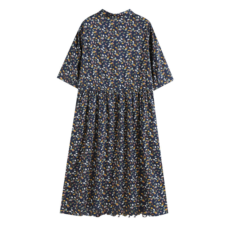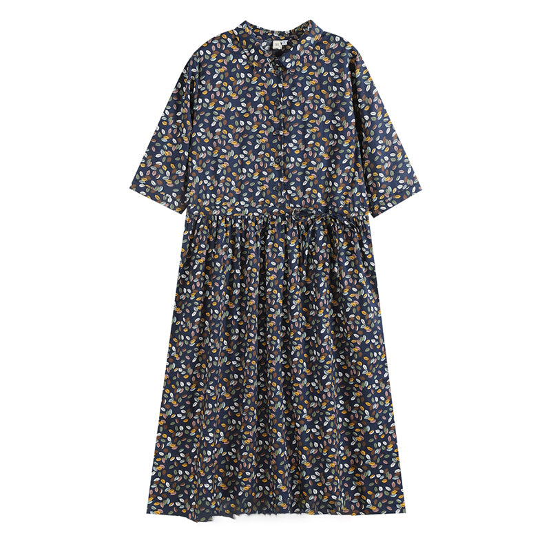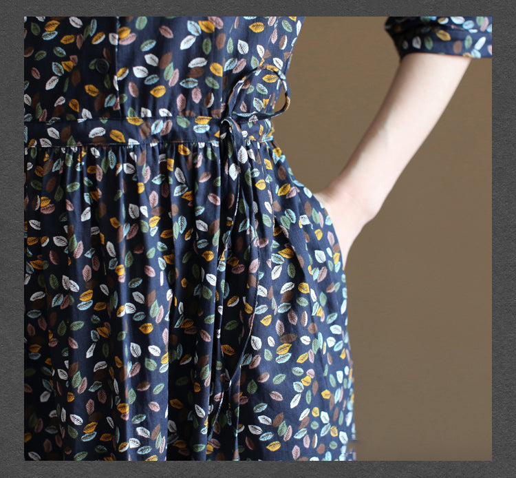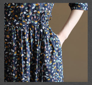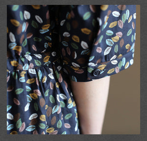 Đầm liền linen ngắn tay cổ đức in những chiếc lá sắc màu - NU10016
