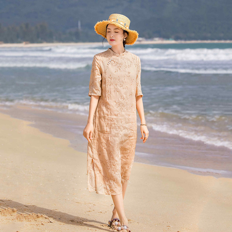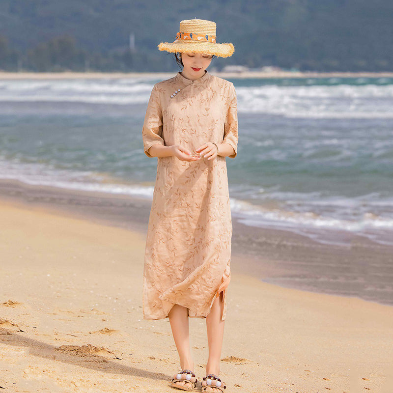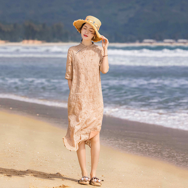 Size M: vai 38cm, ngực 95cm, dài đầm 112cm, dài tay 33cm