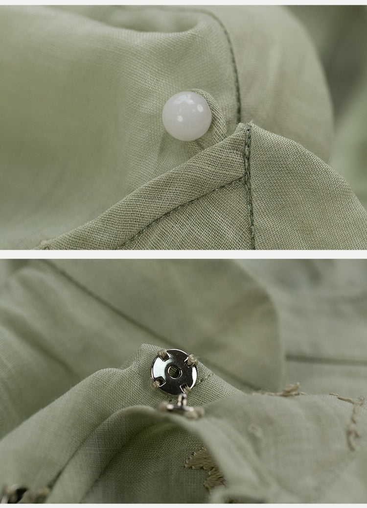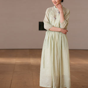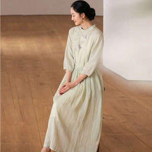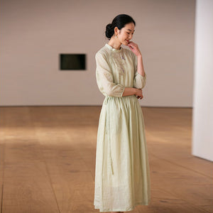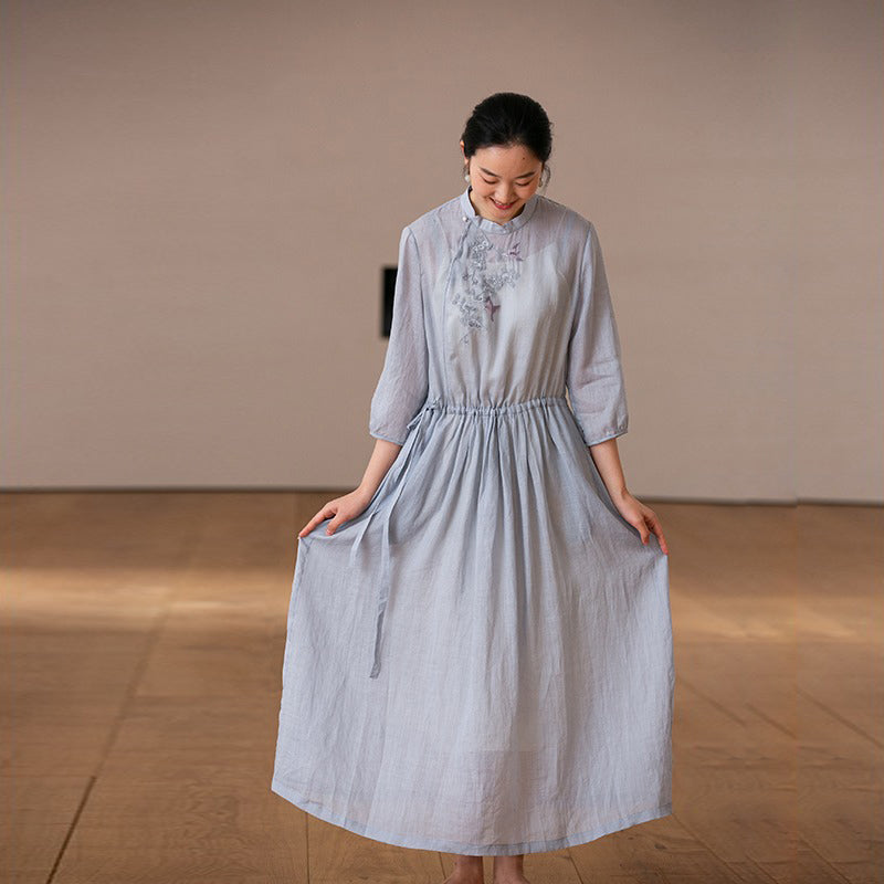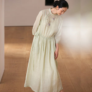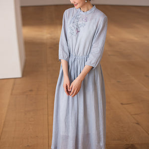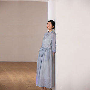 Size S: vai 37-42cm, ngực 97.5cm, dài đầm 123cm, dài tay 41cm