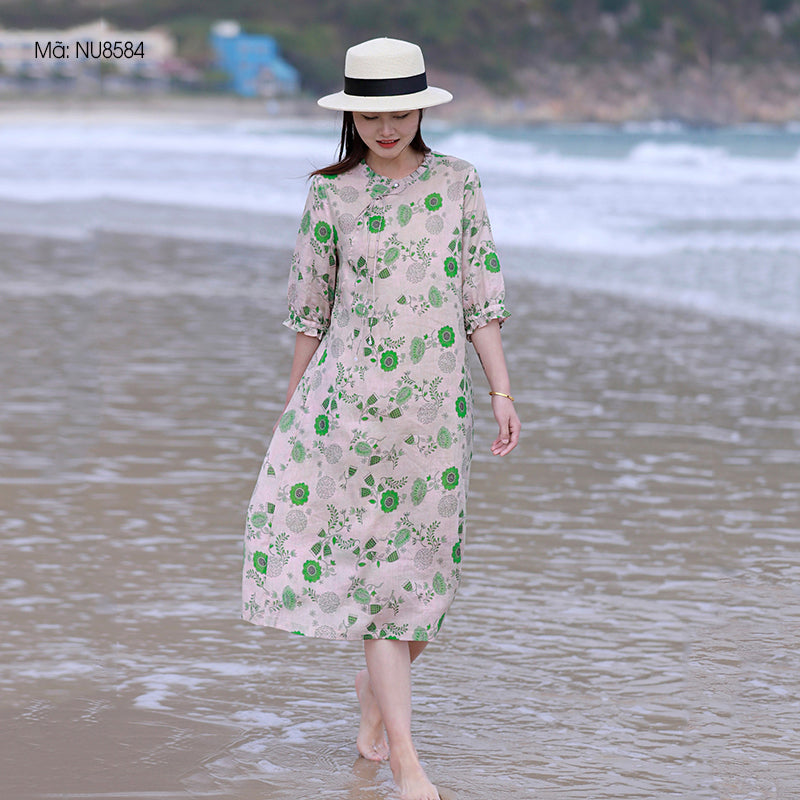 Size S: vai 38cm, ngực 98cm, dài tay 35cm, dài đầm 107cm