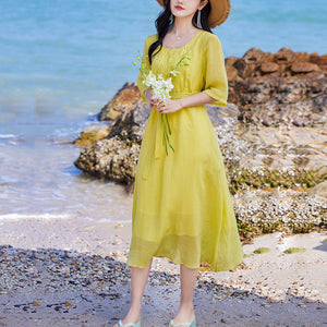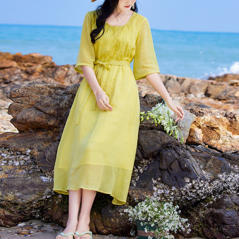 Size M: vai 39cm, dài tay 34cm, ngực 104cm, eo 112cm, dài đầm 116cm