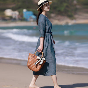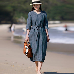 Size S: vai 38.5cm, ngực 100cm, eo 101cm, dài tay 36cm, dài đầm 115cm