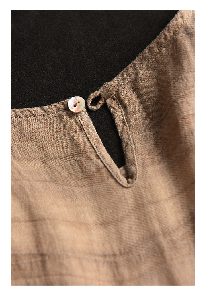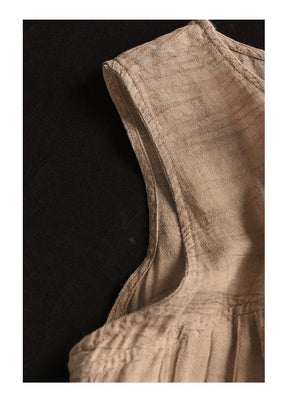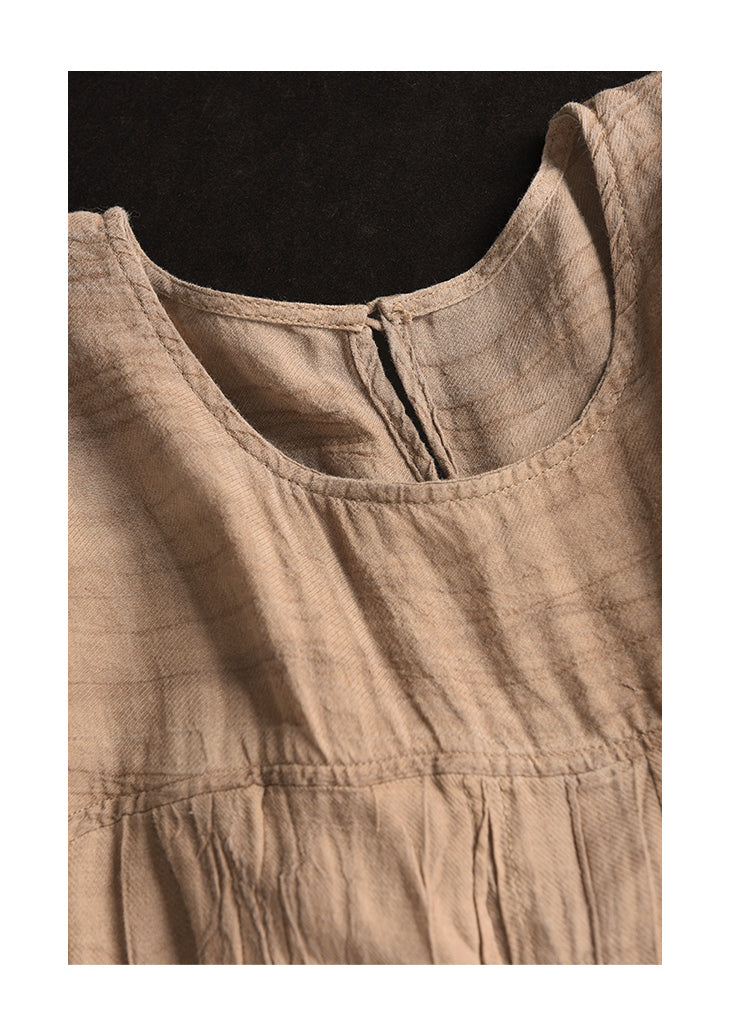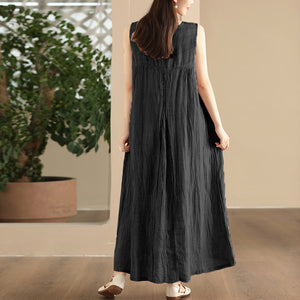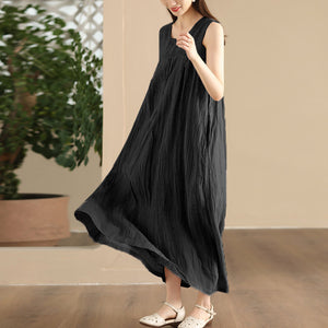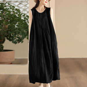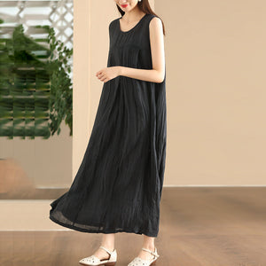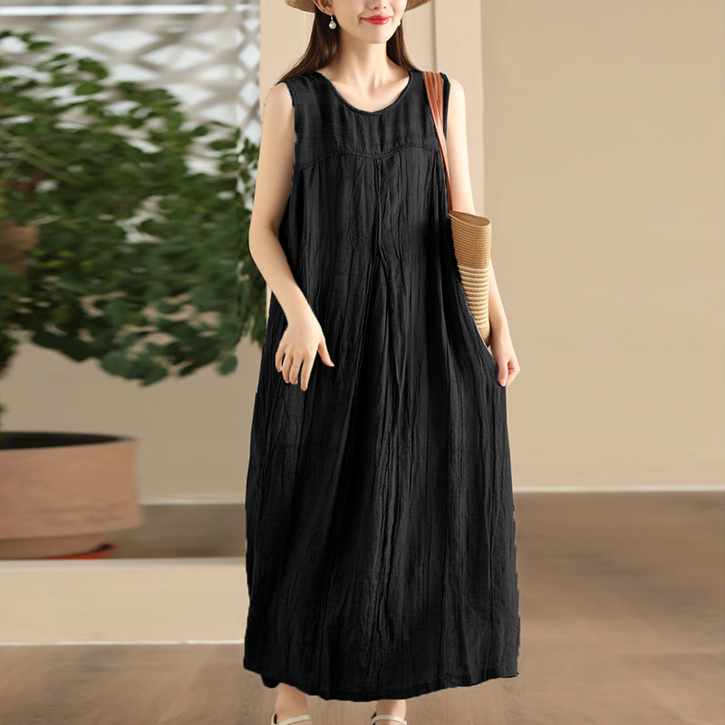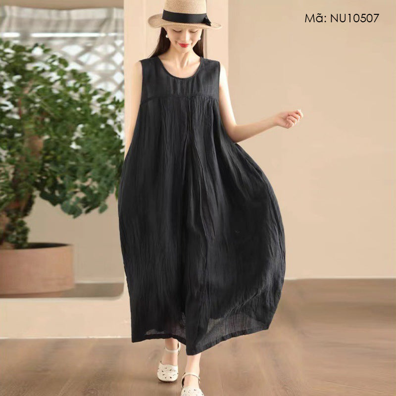 Đầm liền linen sát nách cổ tròn đơn sắc kiểu xẻ sau - NU10507