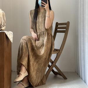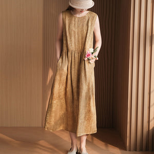 Đầm liền linen sát nách cổ tròn in đồng màu - NU10111