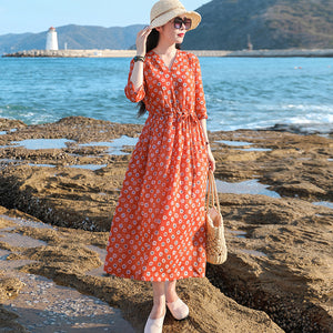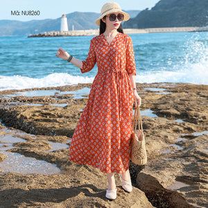 Size M: vai 38cm, ngực 100cm, dài tay 36cm, dài đầm 119cm