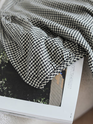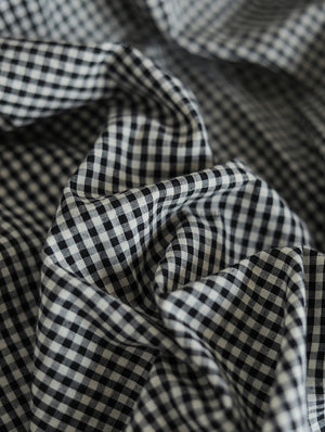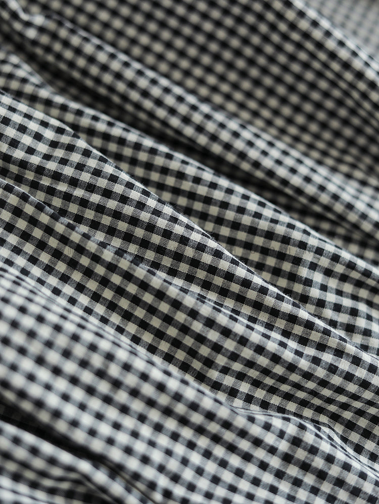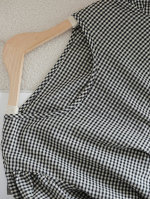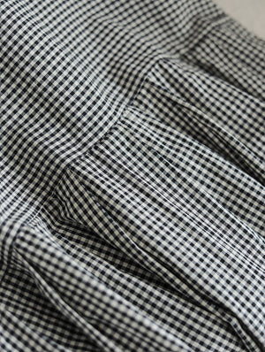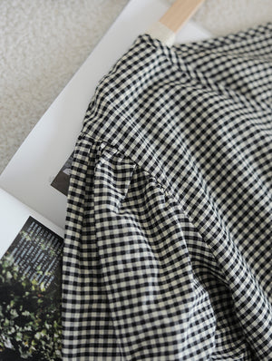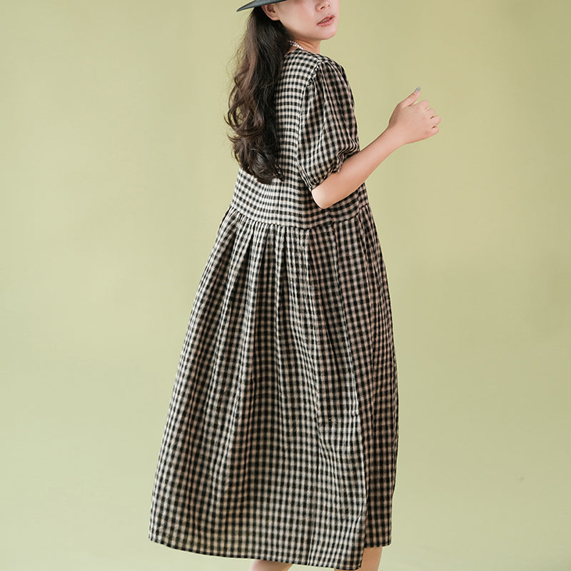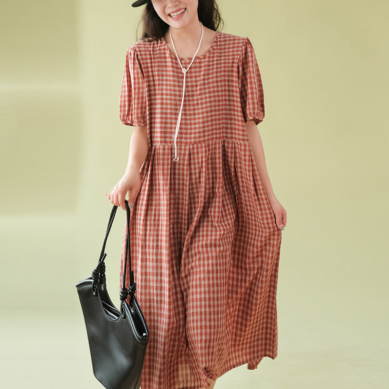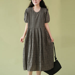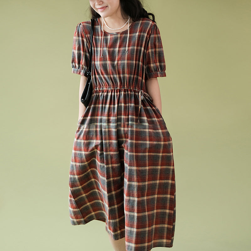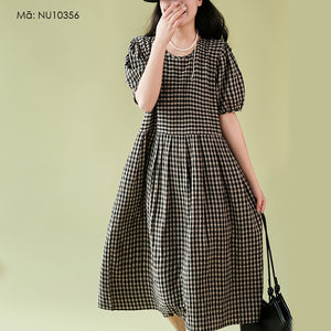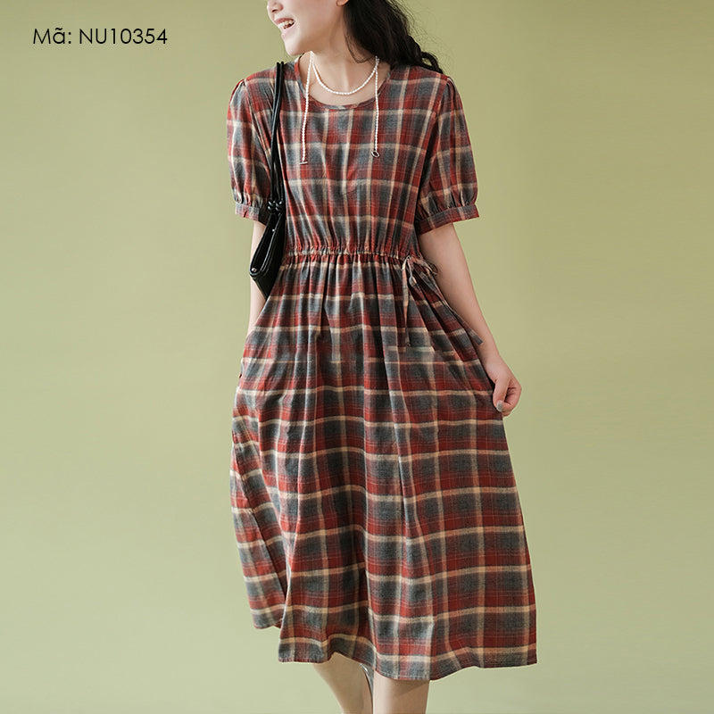Đầm liền ngắn tay cổ tròn kẻ sọc caro chiết eo - NU10354
