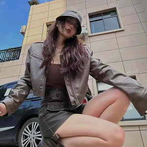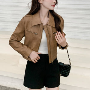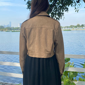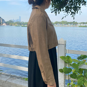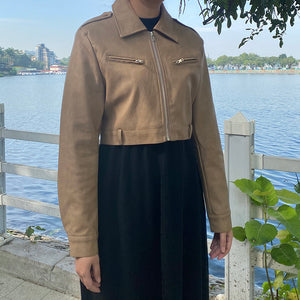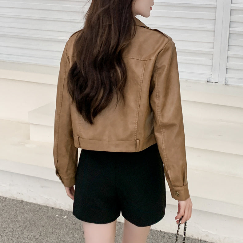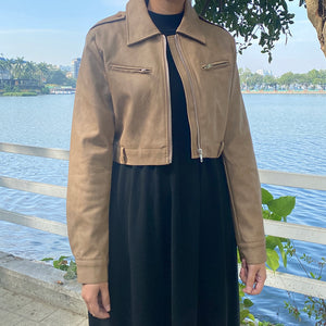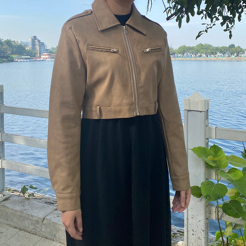 Áo khoác da dài tay cổ đức form ngắn - A501