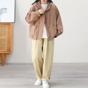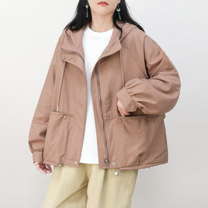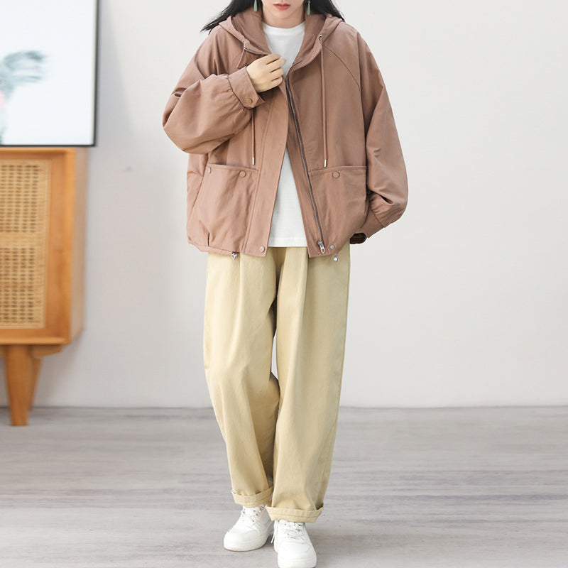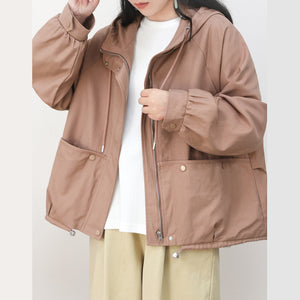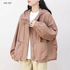 Áo khoác dài tay có mũ khóa kéo hai túi vuông - A067
