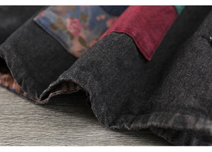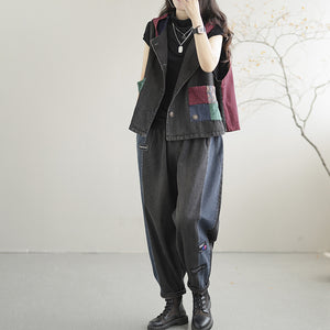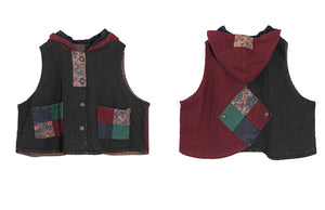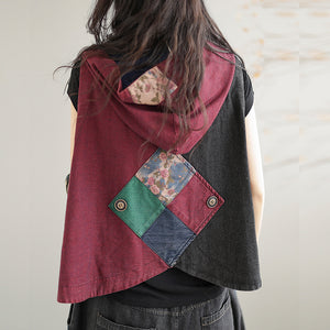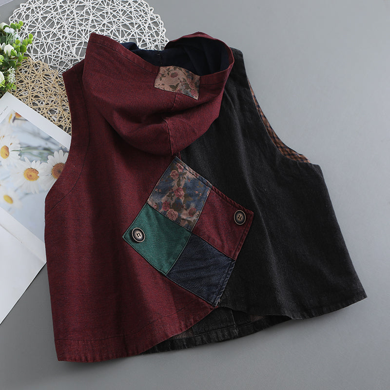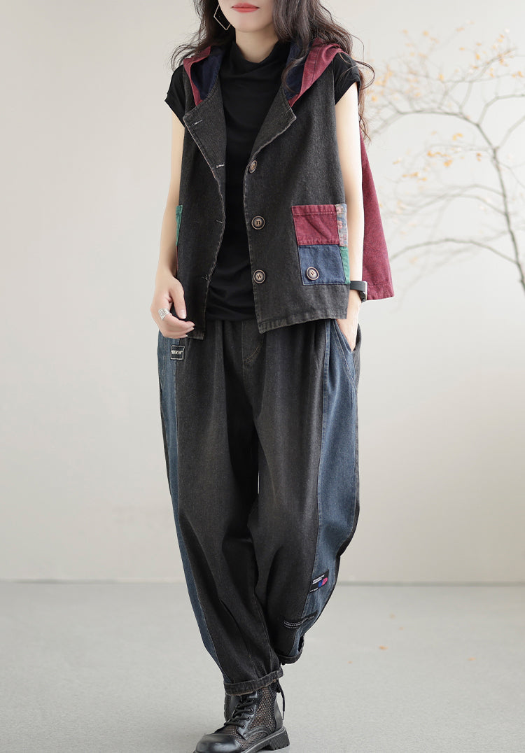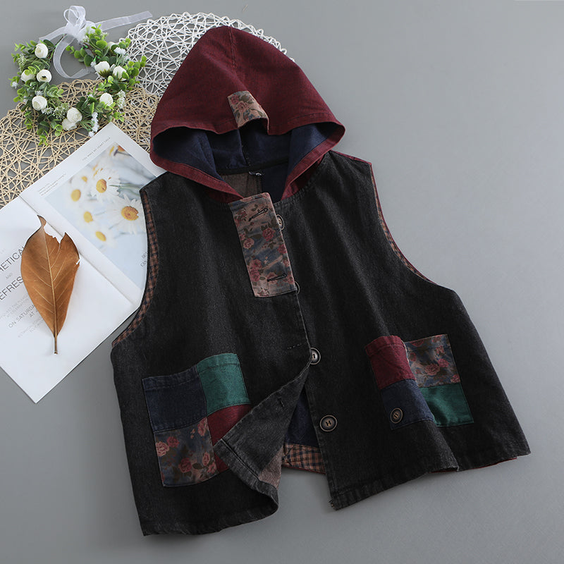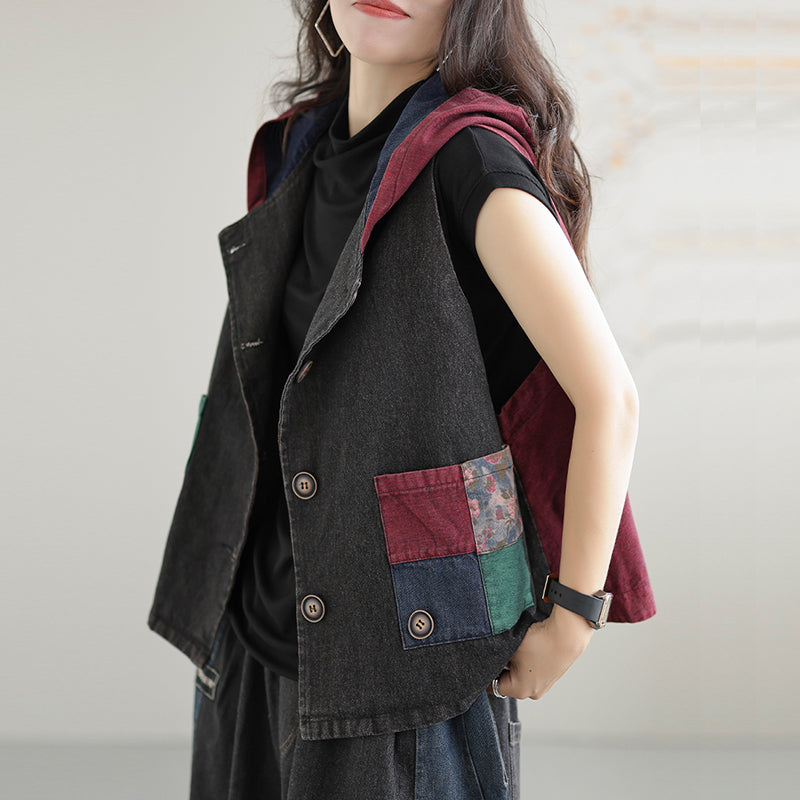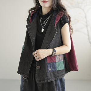 Áo khoác denim sát nách có mũ phối mảng màu - NU7601