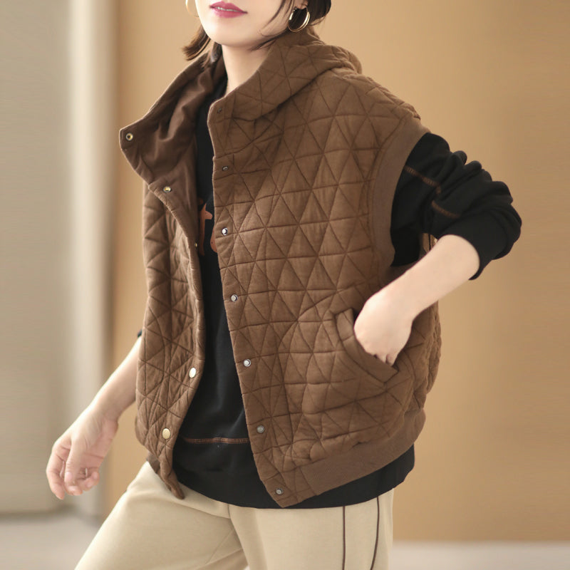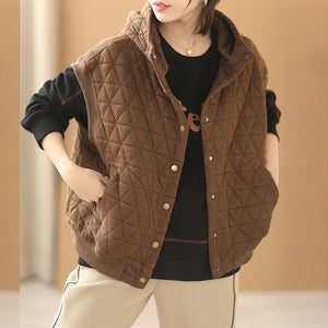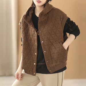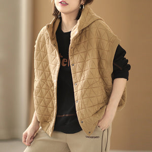 Áo khoác gile trần mắt cáo có mũ - NU7852