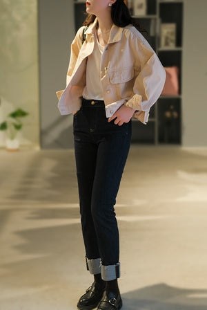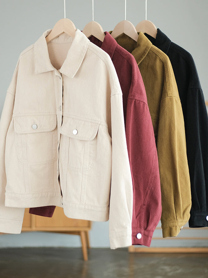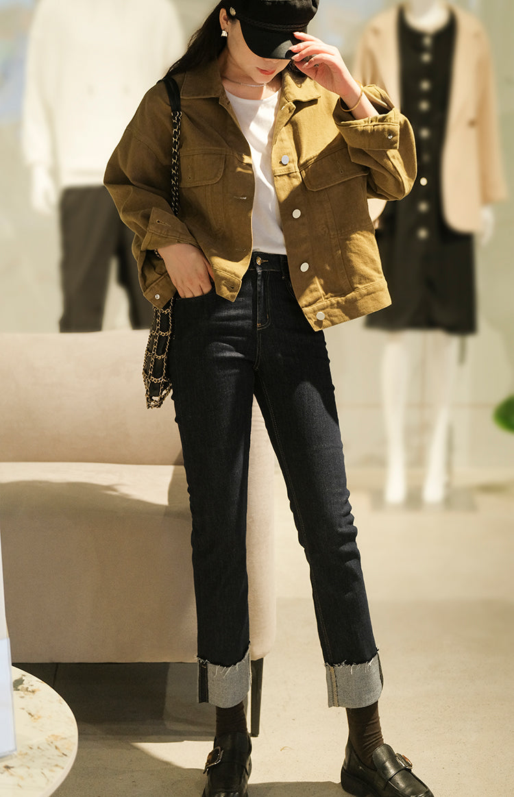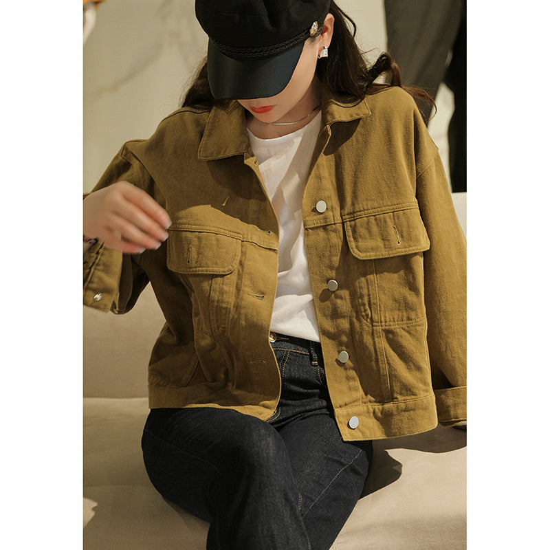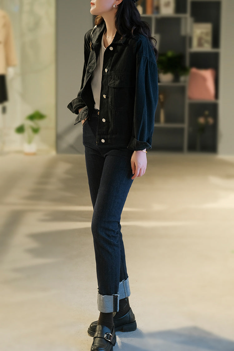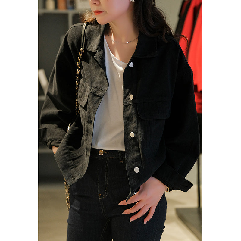 Áo khoác jacket denim dài tay cổ đức hai túi vuông - NU7746