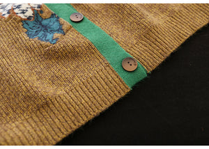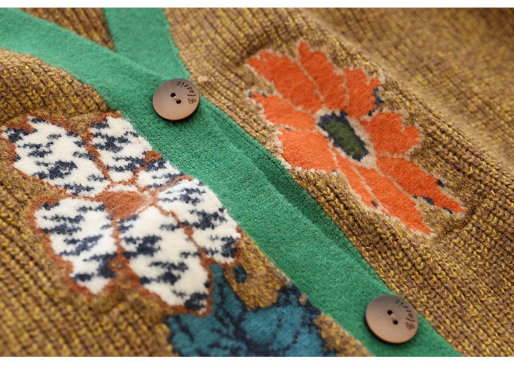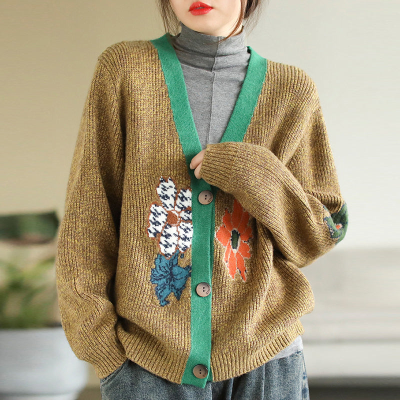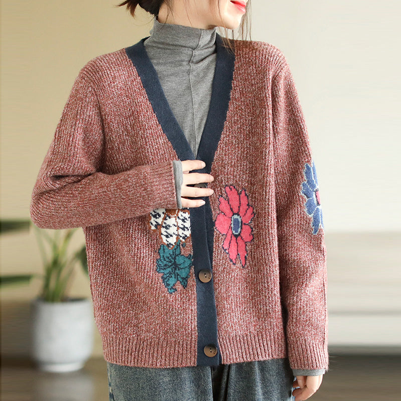 Áo khoác len cardigan dài tay cổ V móc những bông hoa - NU8065