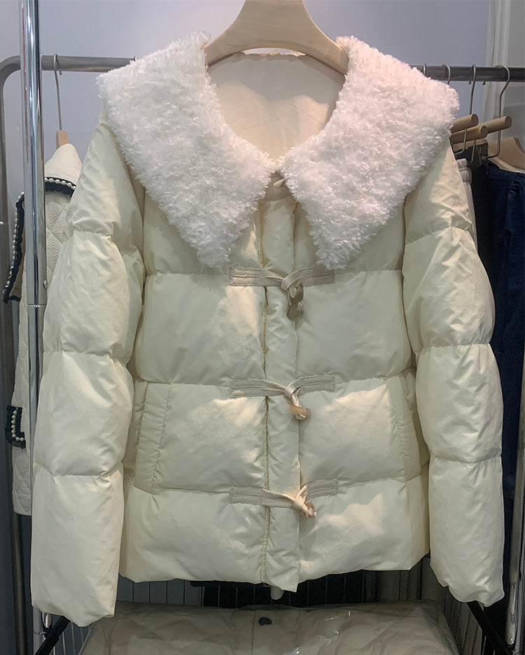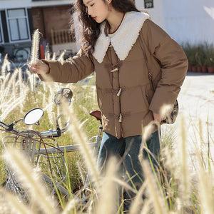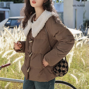 Áo khoác lông vũ dài tay cổ thủy thủ khuy sừng - NU8004