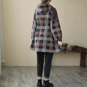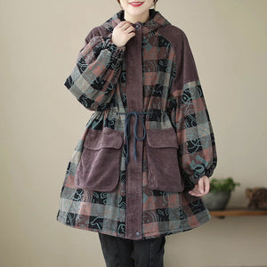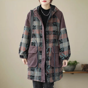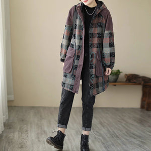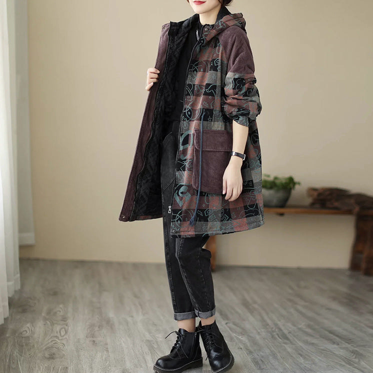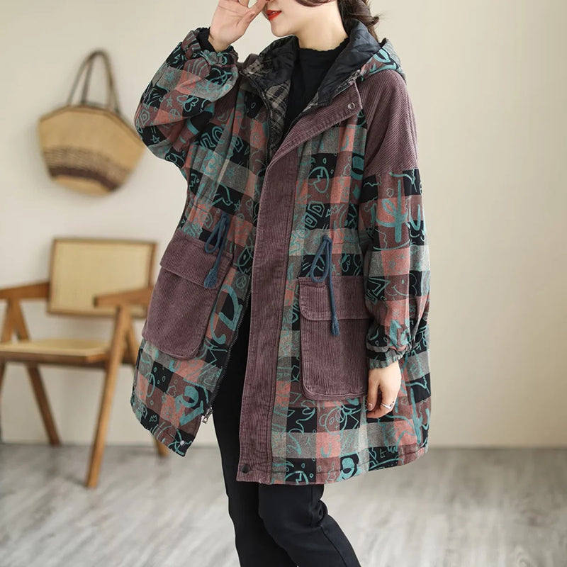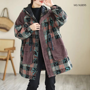 Áo khoác chần bông có mũ form dài hai túi nhung - NU8095