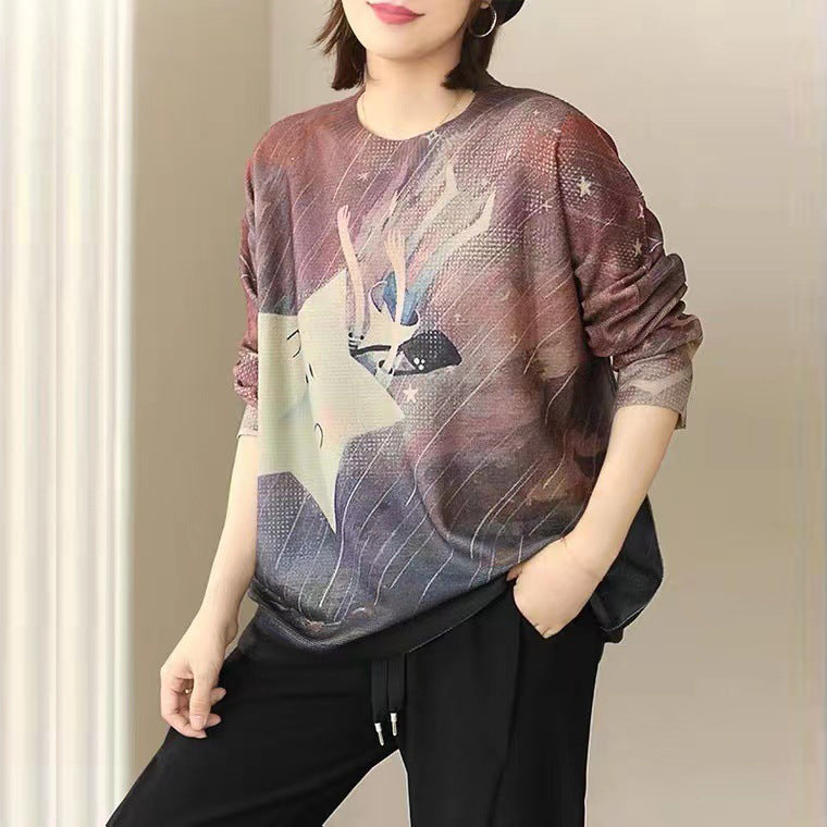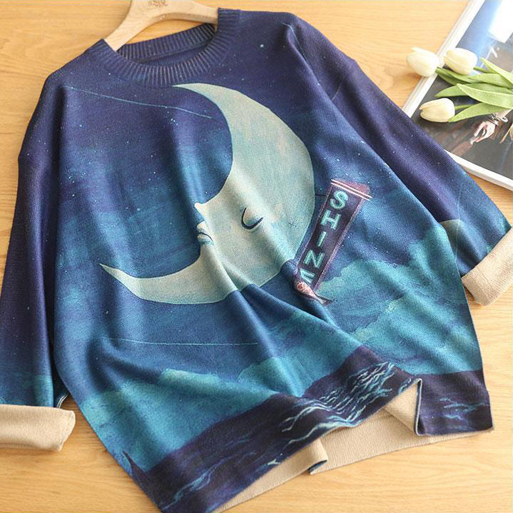 Áo len cashmere dài tay cổ tròn in những ngôi sao - NU7778