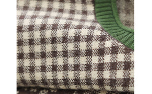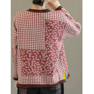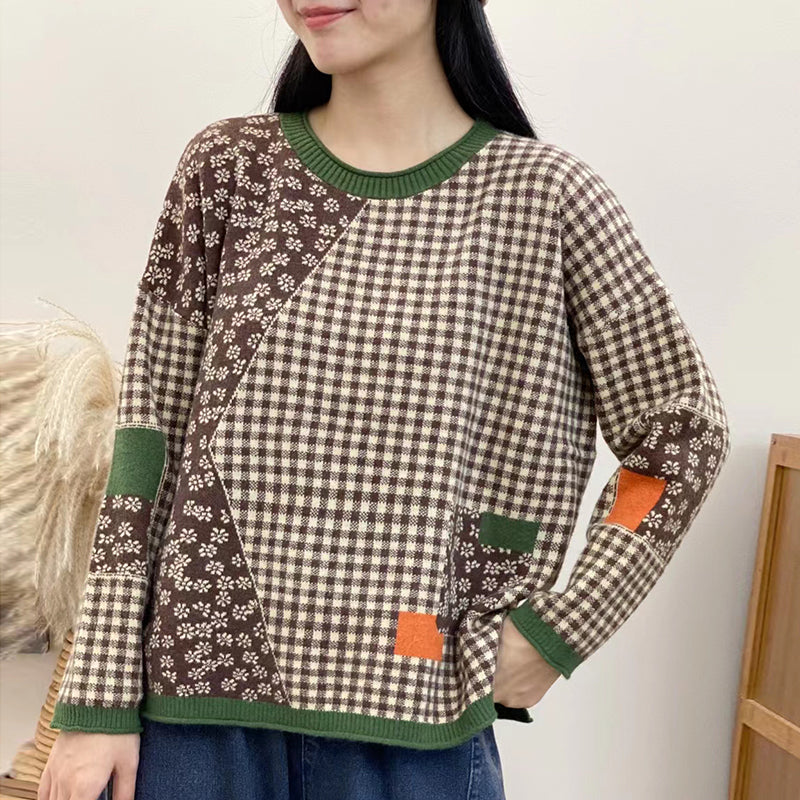 Áo len dài tay cổ tròn caro in hoa lá - NU8074