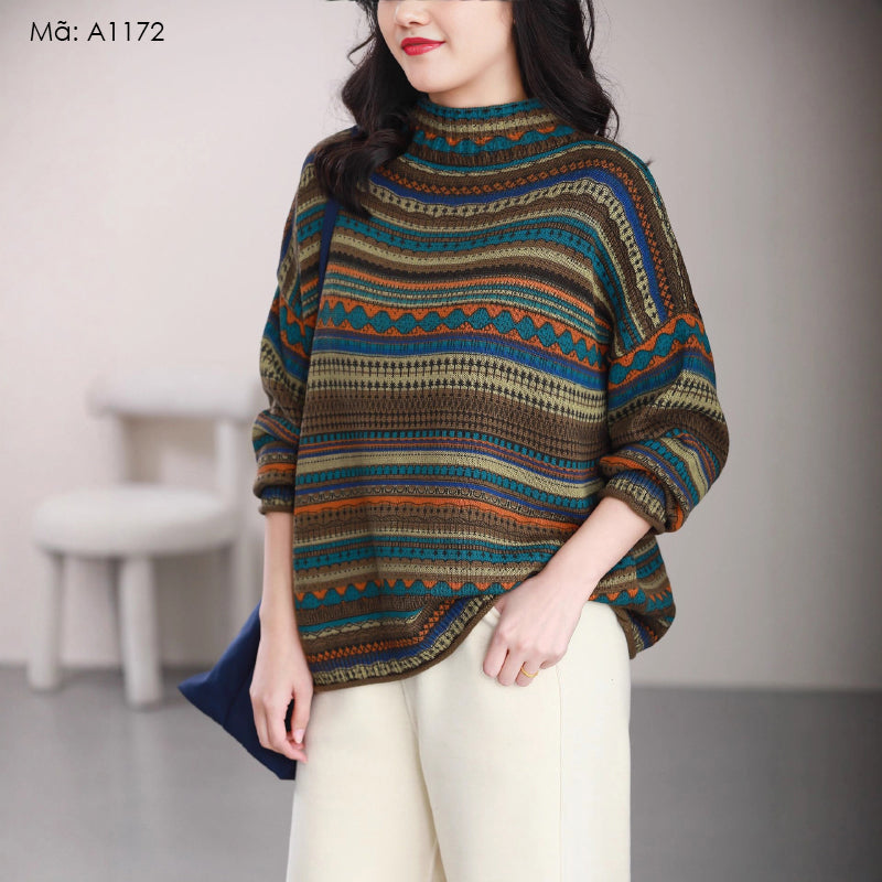 Áo len dài tay retro cổ lọ - A1171