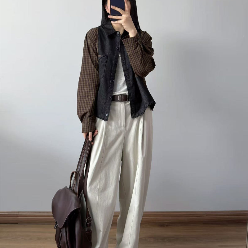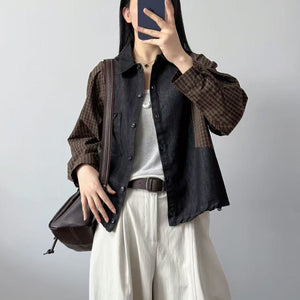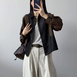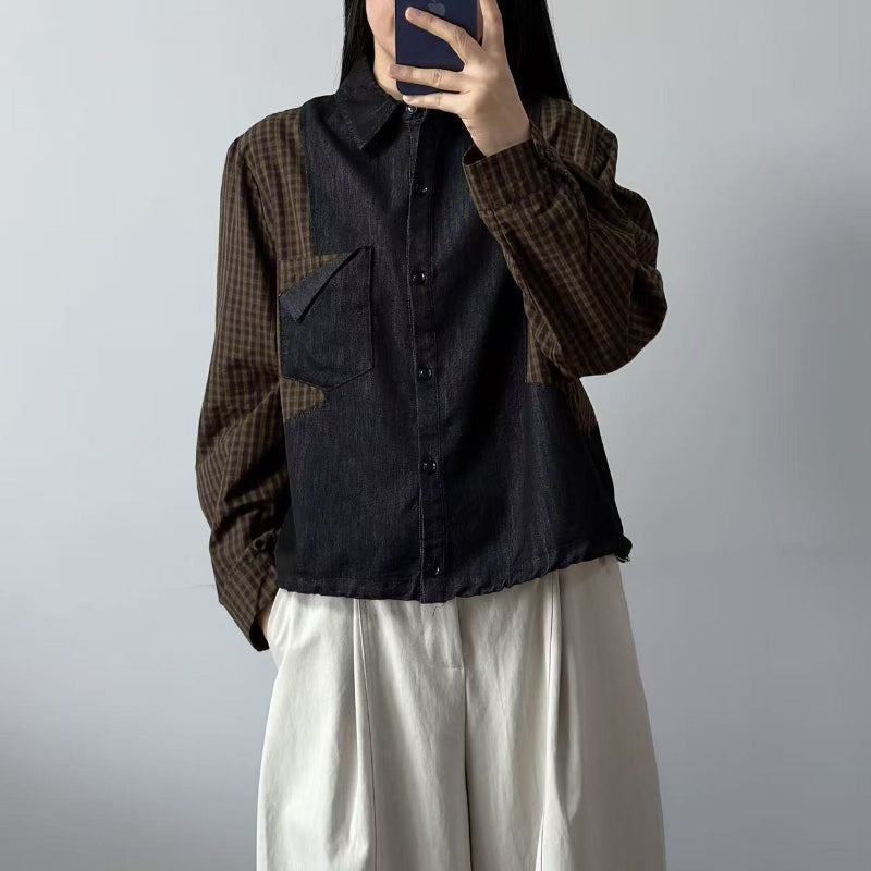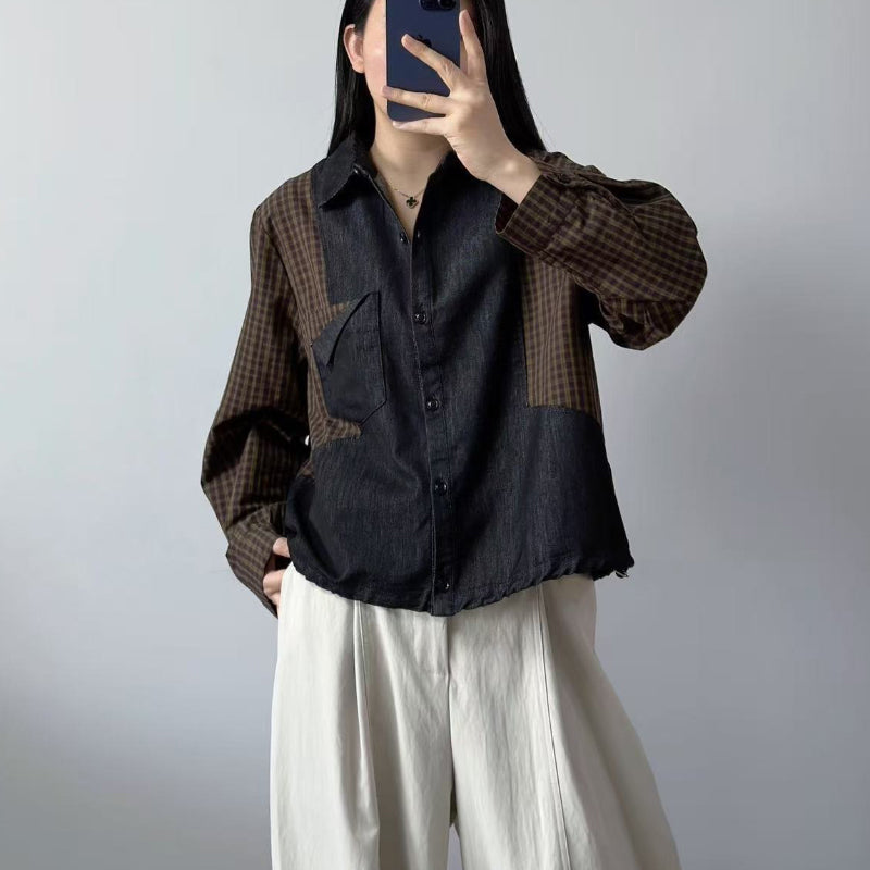 Áo sơ mi denim dài tay phối caro - A1323